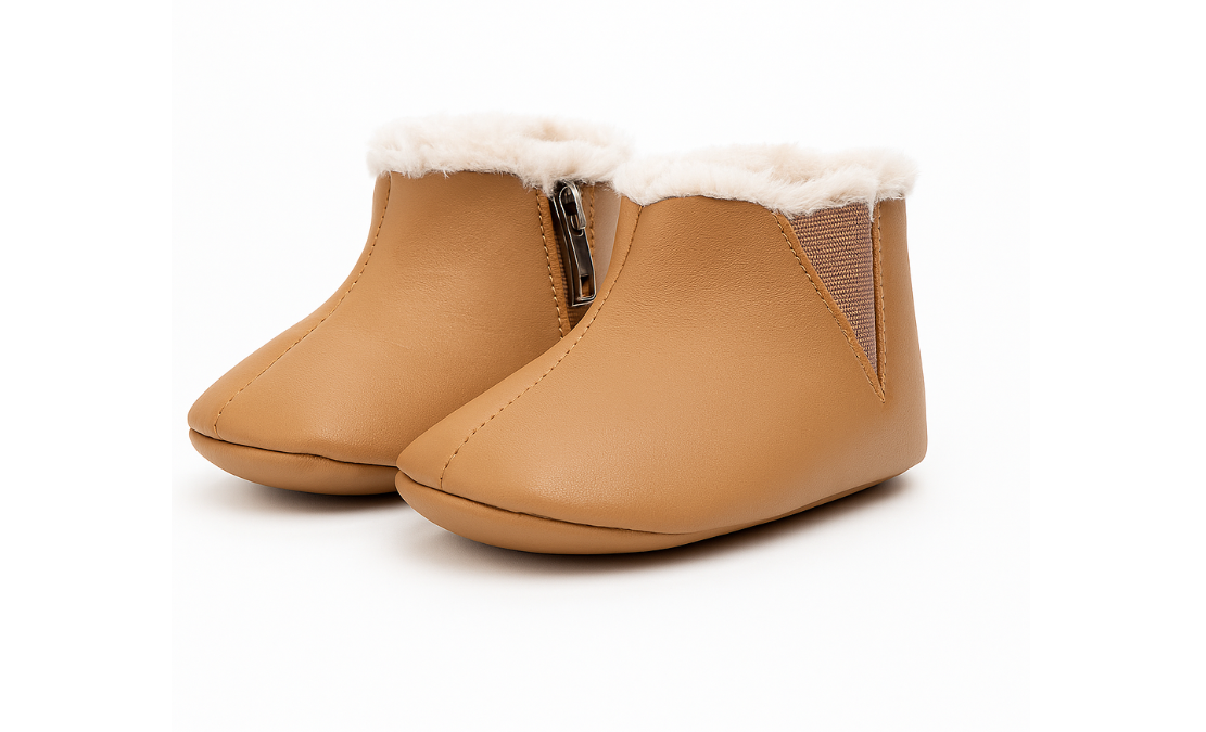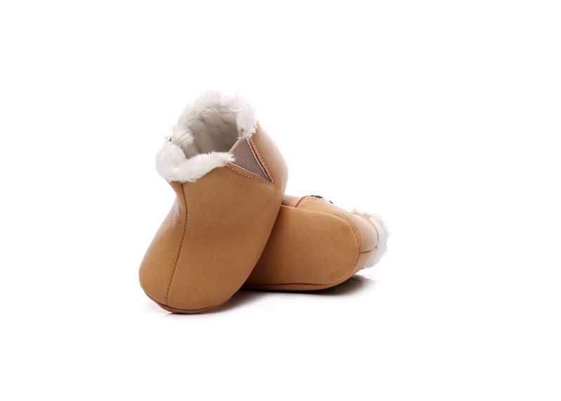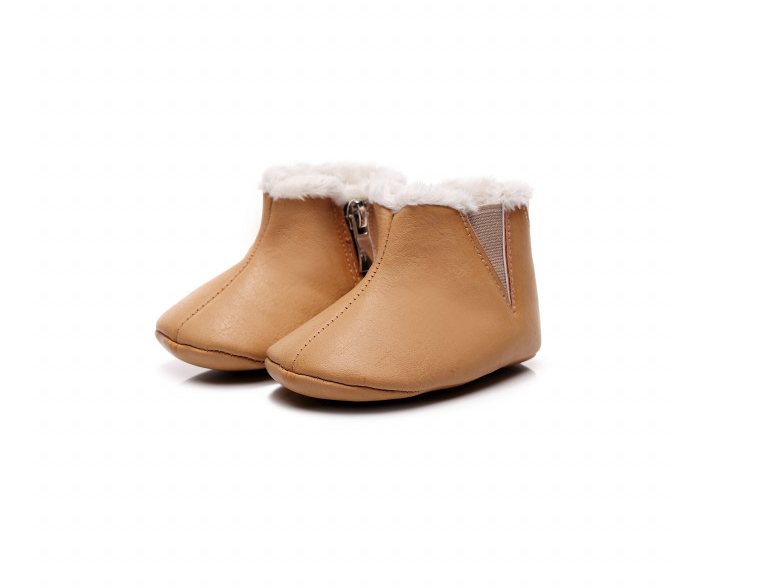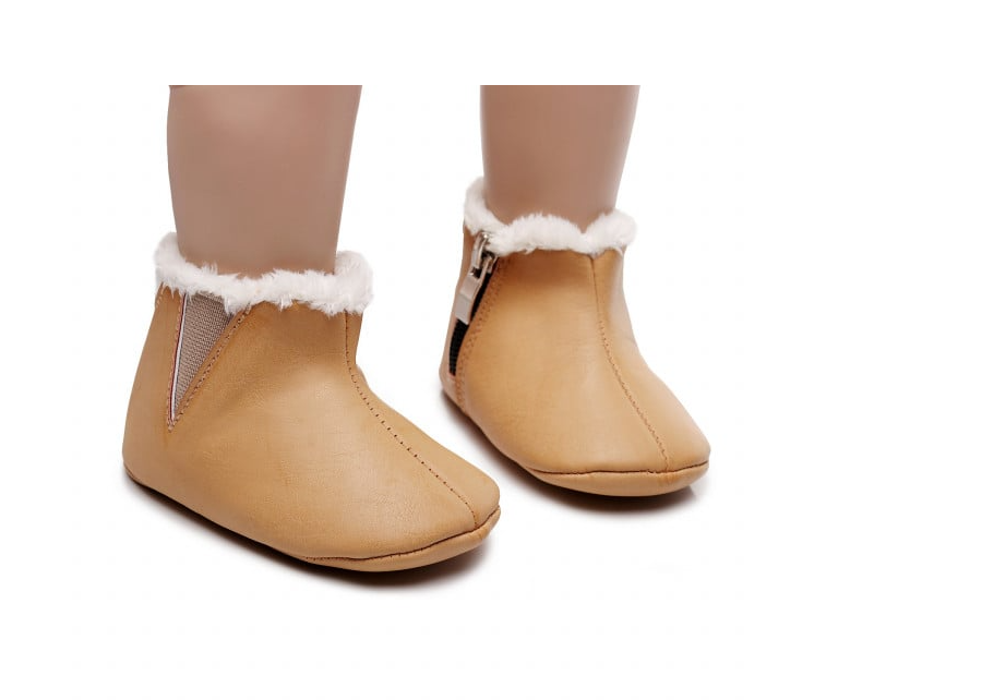 Cizmulite imblanite pentru bebelusi, din material tip piele ecologica. Se inchid cu fermoar in laterale.
