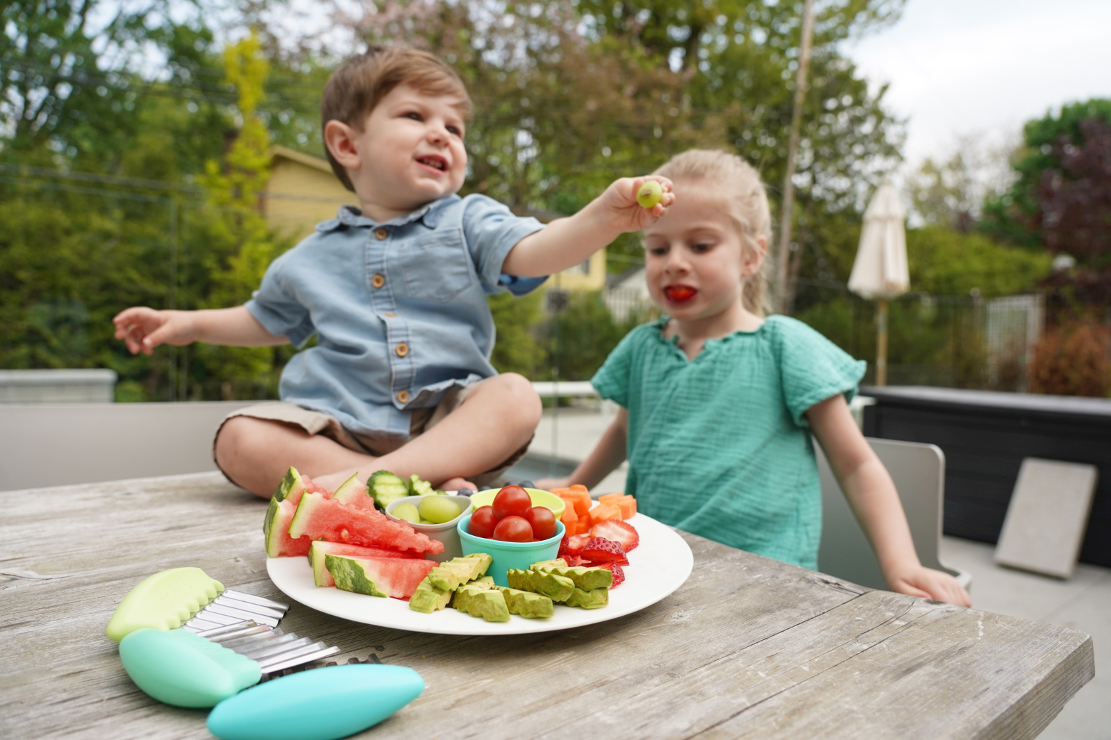 Cutite pentru gustari copii – set 3 forme Melii Taie si decoreaza gustarile cu usurinta cu cutitele pentru gustari copii Melii! Manerele ergonomice permit felieri si tocari fara efort ale legumelor, fructelor si altor alimente, transformand mesele intr-o adevarata distractie. Creeaza rapid cartofi pai ondulati, salate, sandvisuri, branzeturi, biscuiti, legume, fructe si multe altele! Alege intre cele 3 forme diferite ale lamei: ondulata, zig-zag sau patrata, pentru gustari creative si pline de culoare. De ce sa le alegi: Fara BPA, plumb, PVC sau cadmiu Perfecte pentru sandvisuri, cartofi pai, legume, fructe si alte gustari Ideal pentru baby led weaning, adaugand textura alimentelor alunecoase Vine cu 3 forme diferite: ondulata, zig-zag sau patrata Usor de curatat si sigur pentru masina de spalat vase (raft superior) Instructiuni de folosire si curatare: Spala temeinic cu apa calda si sapun sau in raftul superior al masinii de spalat vase, inainte de prima utilizare si dupa fiecare folosire Verifica produsul inainte de fiecare utilizare si arunca-l la primul semn de deteriorare