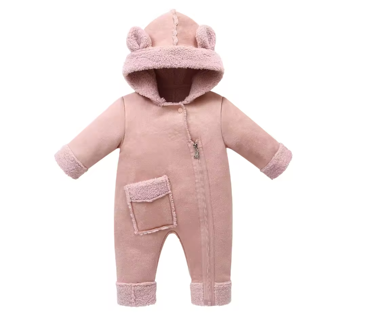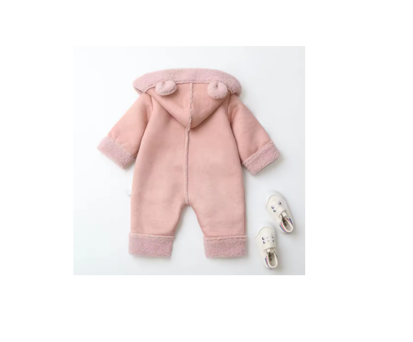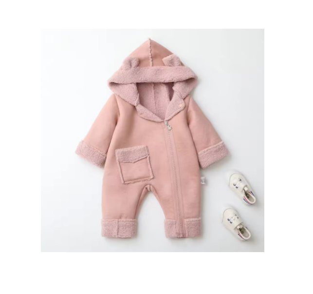 Combinezon bebelusi, Din blanita, Cu gluga si buzunar, Roz prafuit