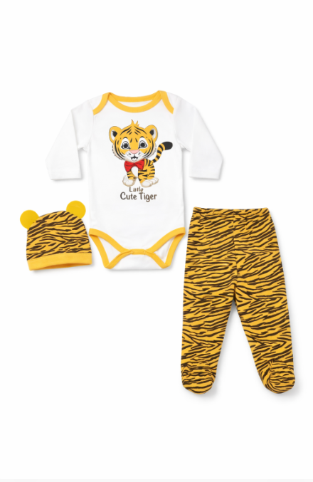 Setul include un body penye, pantaloni penye și o căciuliță penye asortată, oferind o ținută completă și adorabilă pentru bebelușul tău. Culorile vesele, așa cum le vezi în imagine, sunt perfecte pentru a adăuga un strop de culoare garderobei micuțului. Fiecare piesă este concepută pentru a fi ușor de îmbrăcat și dezbrăcat, facilitând schimbările rapide și confortabile.