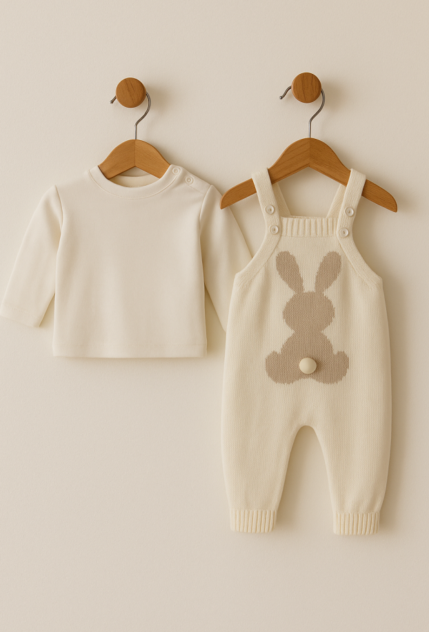 Setul este compus dintr-o bluză din bumbac pieptănat și o salopetă tricotată, oferind o combinație ideală de confort și căldură. Bumbacul pieptănat este extrem de moale și delicat cu pielea sensibilă a bebelușului, permițând totodată o bună respirabilitate. Salopeta tricotată adaugă un plus de căldură și stil, fiind perfectă pentru zilele mai răcoroase.