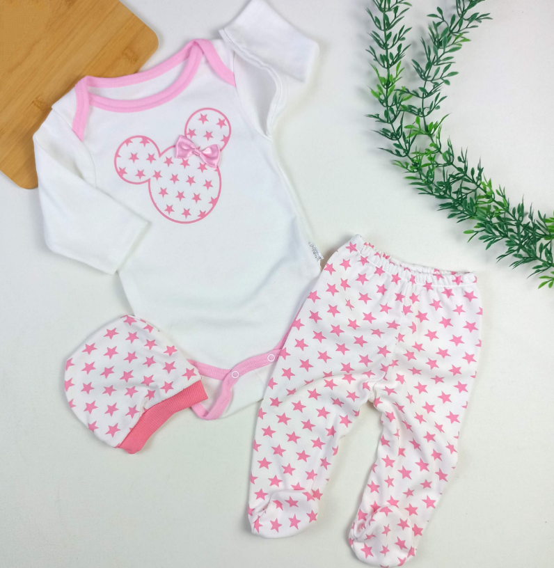 Setul include un body penye, pantaloni penye și o căciuliță penye asortată, oferind o ținută completă și adorabilă pentru bebelușul tău. Culorile vesele, așa cum le vezi în imagine, sunt perfecte pentru a adăuga un strop de culoare garderobei micuțului. Fiecare piesă este concepută pentru a fi ușor de îmbrăcat și dezbrăcat, facilitând schimbările rapide și confortabile.