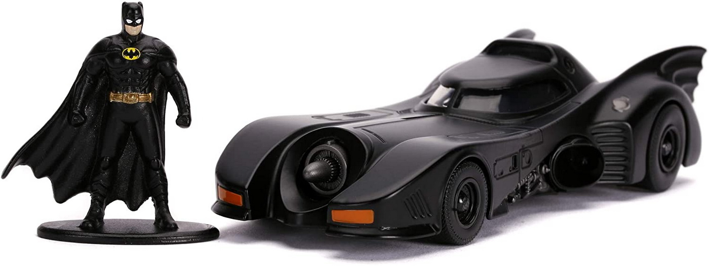 Masinuta de metal din seria Batman 1989 + figurina Batman din metal, Scara 1:32. Fanii Batman vor adora Batmobile din 1989 din filmul clasic Batman din 1989. Acest Batmobile este un favorit al fanilor si este la scara 1:32, usile se deschid. Replica fidela din filmul Batman din 1989. De asemenea, este inclusa o mini-figurina Batman din metal.