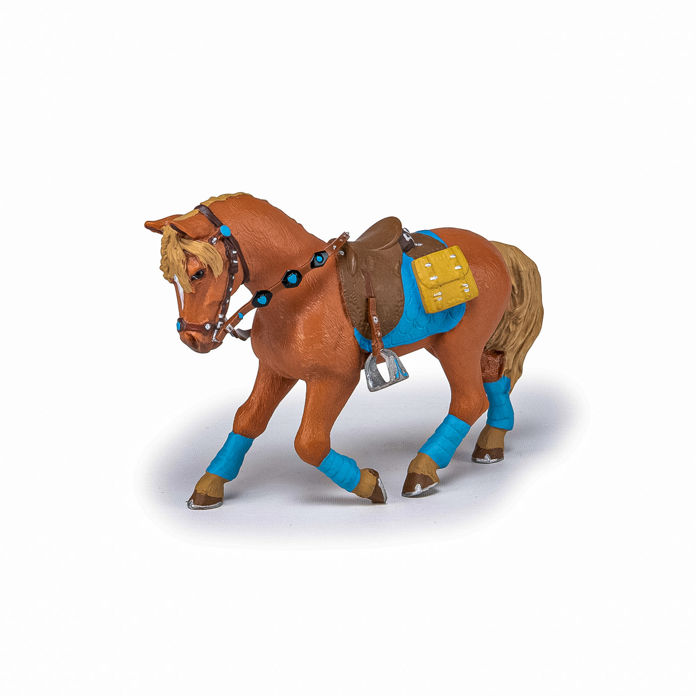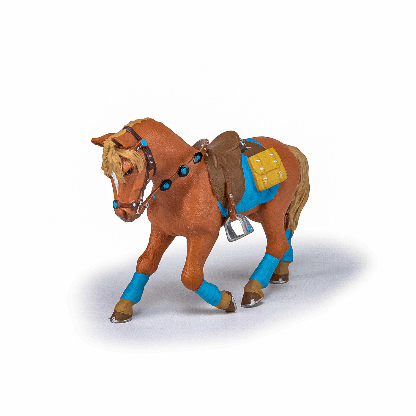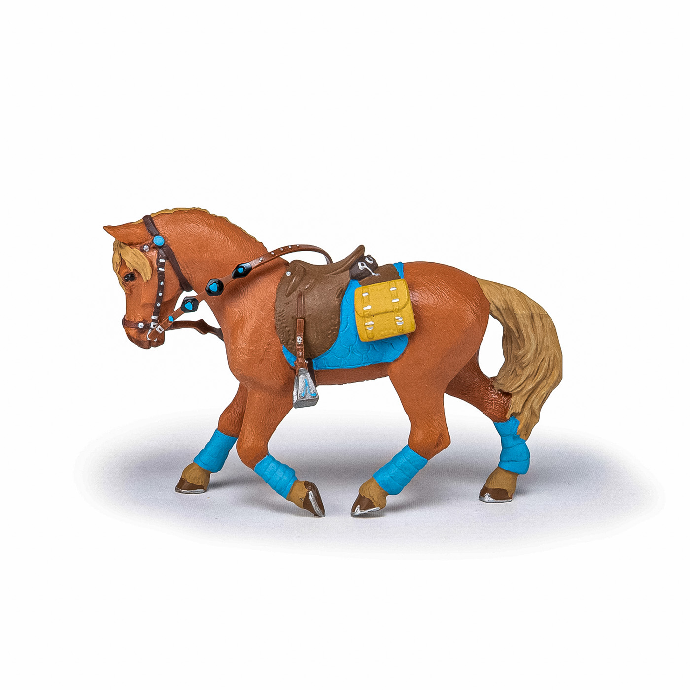 Faceti o plimbare prin campuri cu ecvinele Papo, participati la concursuri de sarituri sau chiar la cursuri de dresaj. Foarte elegant, cu sa albastra si benzile asortate, care ies in evidenta pe blana sa castanie, acest cal asteapta cu rabdare sosirea calaretului sau pentru a merge la o plimbare in padure. Produsul are urmatoarele dimensiuni: 11.7 x 3.5 x 8cm si este recomandat copiilor cu varsta peste 3 ani. De mai bine de 20 de ani, Papo inoveaza constant si ii face pe copii din intreaga lume sa viseze cu o gama bogata de peste 600 de produse, reprezentand 12 lumi, animale si personaje. De la modelul original la serie, fiecare dintre figurinele Papo a fost conceputa si creata in Franta pentru a fi fabricata intr-o permanenta preocupare pentru calitate. Pictate manual, atentia la detalii este acum recunoscuta. Figurinele Papo se disting prin acuratete si realism, detaliile sunt de asa natura incat am putea crede ca se vor pune in miscare.