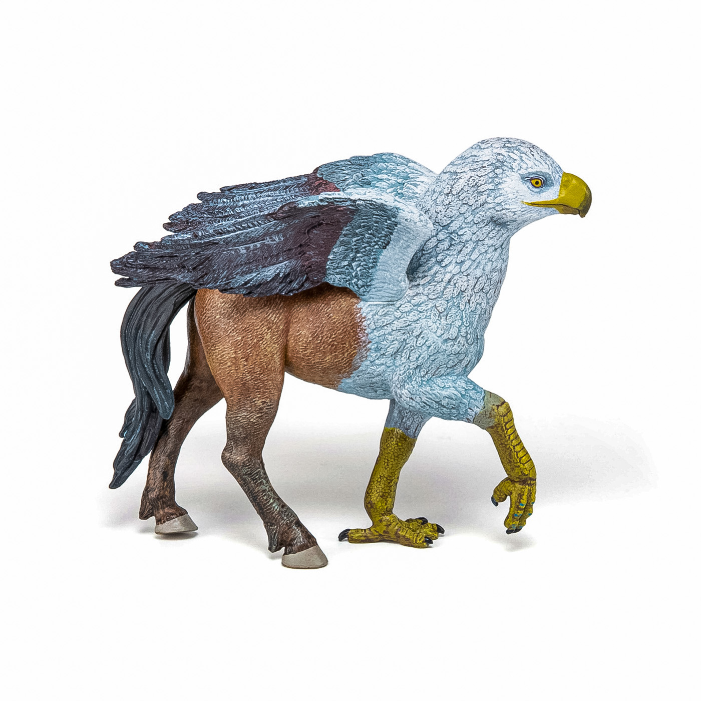 Cu figuri fantastice ale lumii, vei calaretui dragoni, vei lupta alaturi de orci si centauri si vei lupta impotriva puternicului minotaur. Cu figurinele lumii medievale traiesc batalii epice, apara-ti regatul impotriva inamicului sau infrunta cavaleri intr-un duel. Figurina Grifon de la Papo completeaza cu succes colectia ta de animale fantastice. O figurina produsa din plastic durabil care nu isi va pierde proprietatile in timp. Deosebita prin detaliile surprinse in material, figurina Grifon de la Papo aduce un plus de valoare in orice diorama. Grifon a fost in mitologia greaca un monstru inaripat cu trup leonin, cu cap si aripi de vultur, consacrat zeului Apollo. Se credea ca locuieste in tinutul hyperboreienilor, pazind aurul nordic impotriva arimaspilor. intr-o alta varianta, grifonii sunt considerati paznicii lui Zeus. Produsul are urmatoarele dimensiuni: 13 x 8 x 10cm si este recomandat copiilor cu varsta peste 3 ani. De mai bine de 20 de ani, Papo inoveaza constant si ii face pe copii din intreaga lume sa viseze cu o gama bogata de peste 600 de produse, reprezentand 12 lumi, animale si personaje. De la modelul original la serie, fiecare dintre figurinele Papo a fost conceputa si creata in Franta pentru a fi fabricata intr-o permanenta preocupare pentru calitate. Pictate manual, atentia la detalii este acum recunoscuta. Figurinele Papo se disting prin acuratete si realism, detaliile sunt de asa natura incat am putea crede ca se vor pune in miscare.