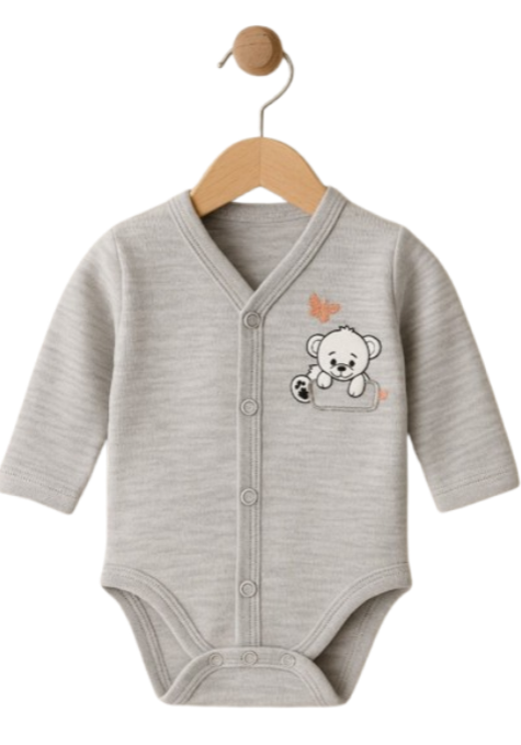 Body, nou nascut, 0-3 luni, Cu brodererie, Gray
