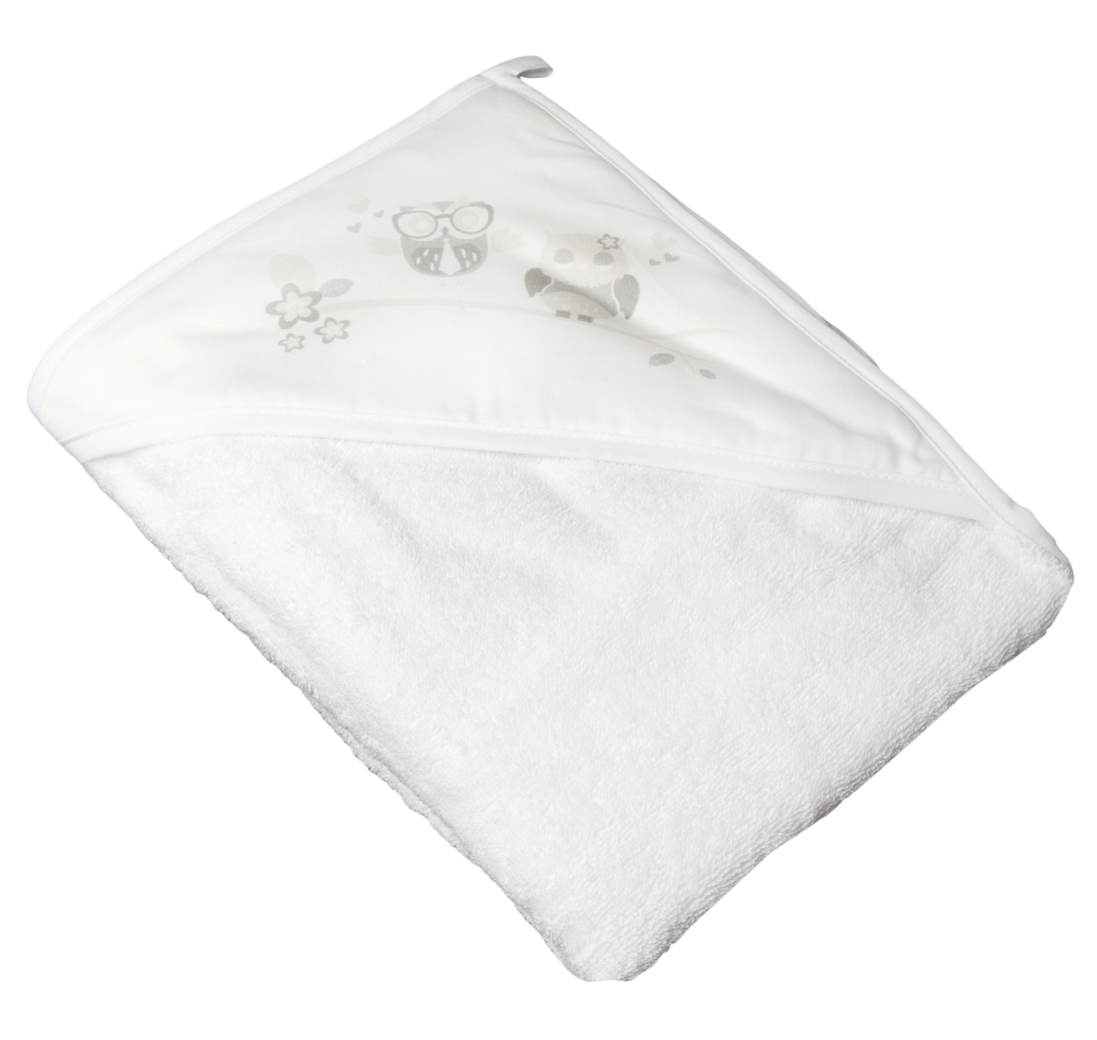 Prosop cu gluga din bumbac 100x100 cm, Tega Baby, colectia bufnita, alb