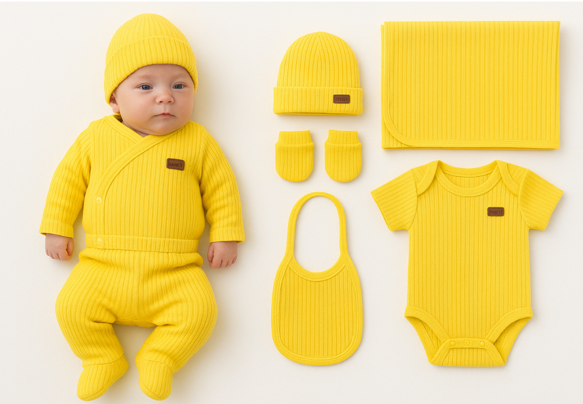 Set 7 piese, trusou, Bumbac pieptanat, Galben