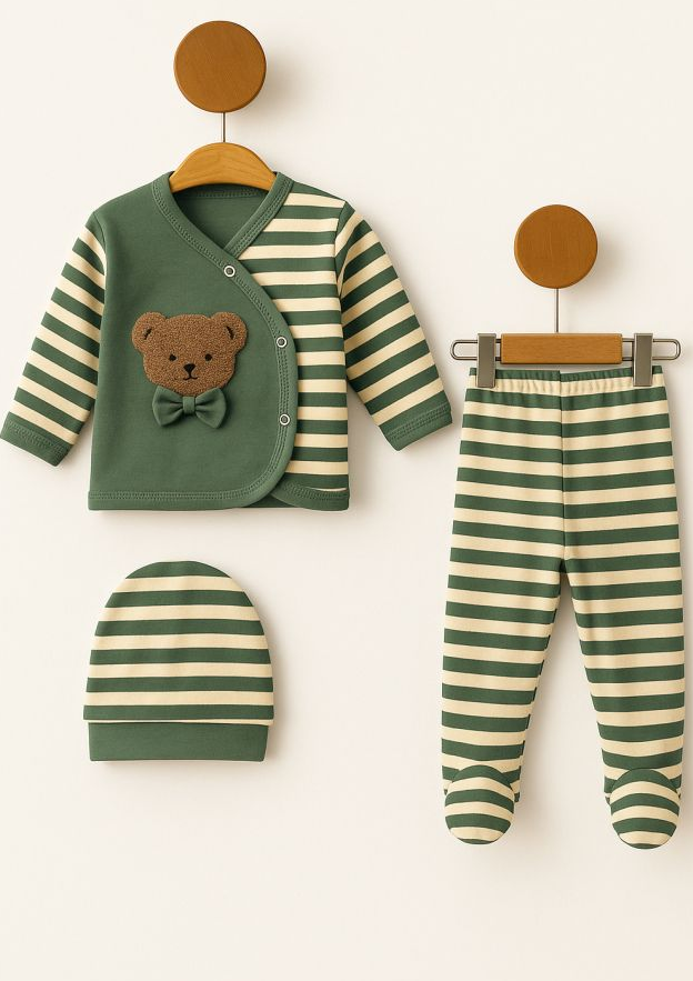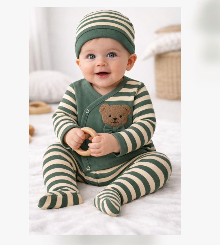 Acest set include tot ce are nevoie bebelușul tău pentru un look adorabil și confortabil: