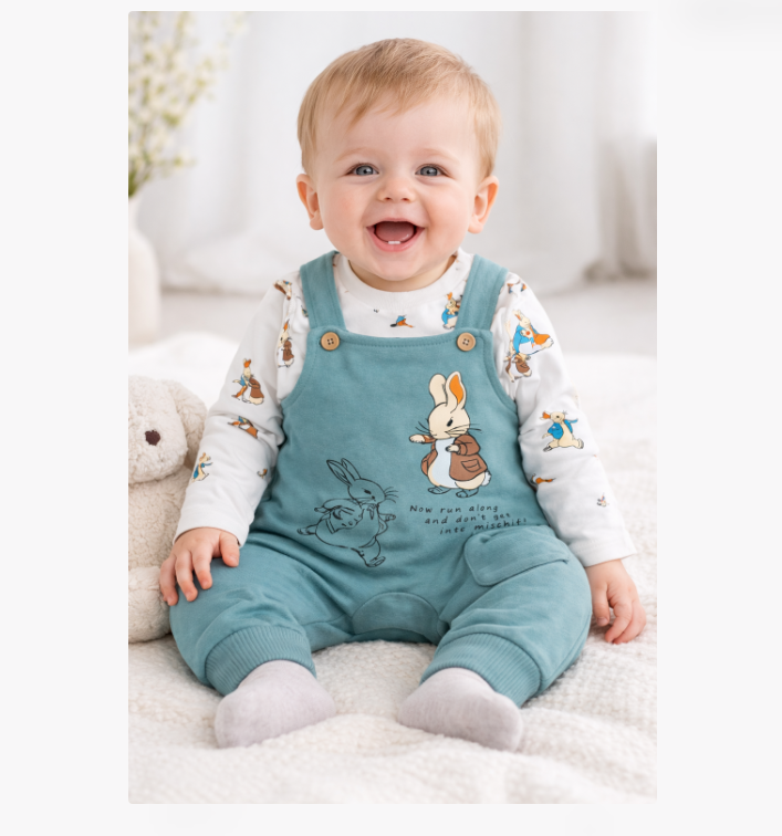 Set salopeta cu bluzita, Iepuras, Vernil