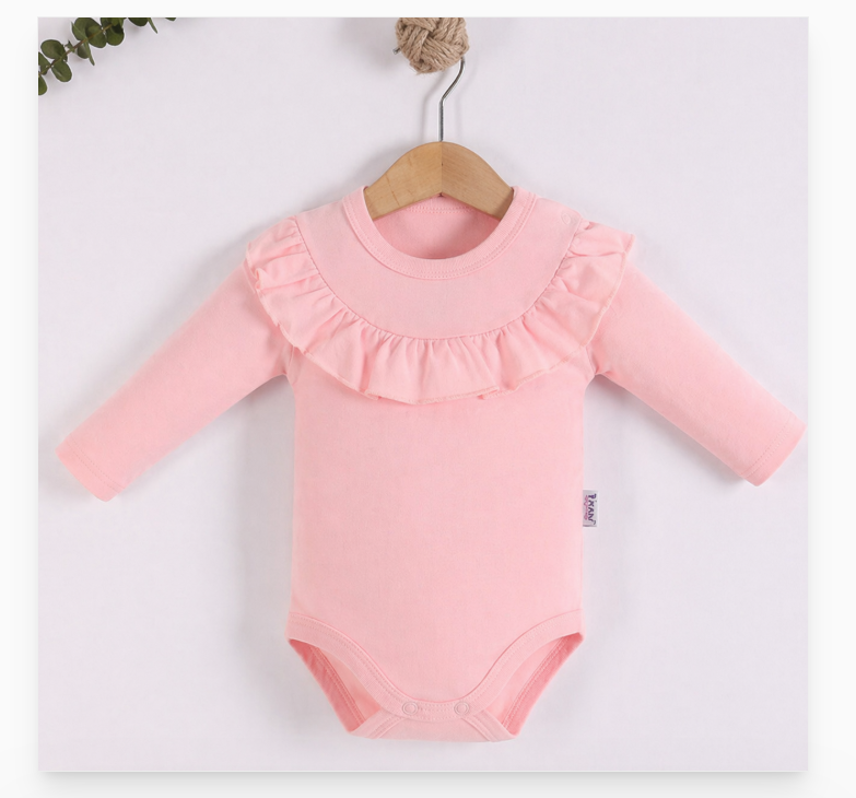 Body pentru bebeluși, elegant și confortabil, realizat din bumbac moale de înaltă calitate, ideal pentru pielea sensibilă a micuței tale. Designul delicat cu volan adaugă un plus de rafinament și transformă acest body într-o alegere perfectă atât pentru ținutele de zi cu zi, cât și pentru ocazii speciale.
