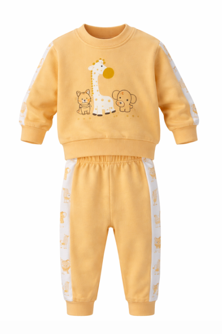 Compleul pentru bebeluși ZOOFriends este alegerea practică pentru părinții care vor hainuțe comode, ușor de îmbrăcat și rezistente la purtare zilnică. Setul este format din bluză tip sweatshirt și pantaloni cu talie elastică, realizate din material moale, plăcut la atingere.