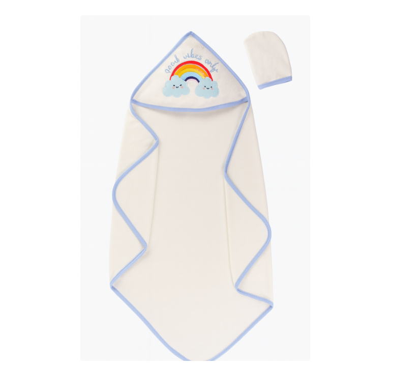 Prosop bebe, cu capison si manusa, model curcubeu albastru