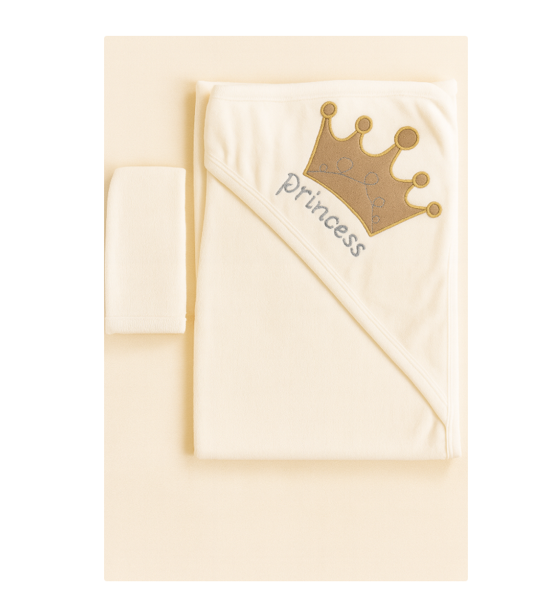 Prosopul este dotat cu capison pentru a mentina temperatura corpului copilului pe durata siestei de dupa baita si cu manusi bebe.