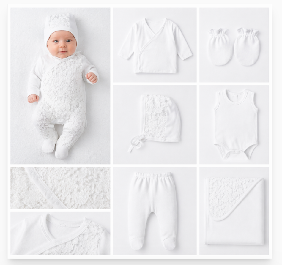 Set 10 piese haine Bebelusi, 100% Bumbac antialergic, 0-4 luni, Dantela brodata