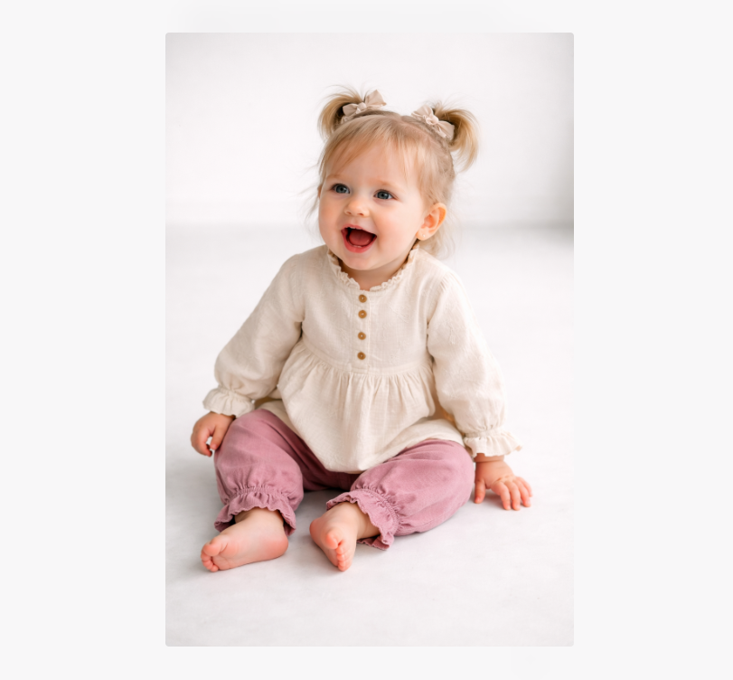 Setul nostru din muselină nu este doar sigur și confortabil, ci și foarte practic. Materialul de muselină este extrem de respirabil, ideal pentru a menține bebelușul confortabil în timpul somnului sau al jocului. Designul simplu, dar adorabil, îl face perfect pentru orice ocazie.