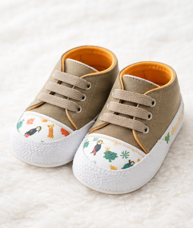 Acești pantofi pentru bebeluși cu imprimeu safari sunt perfecți pentru a completa orice ținută și pentru a adăuga un plus de stil garderobei micuțului tău.
