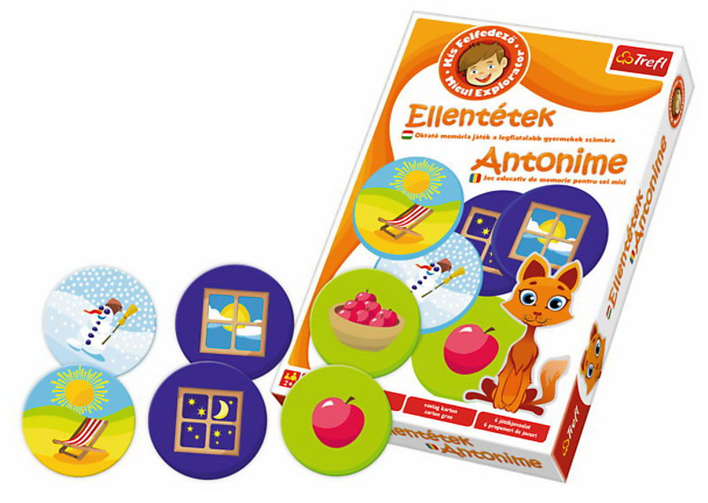 IInvata antonimeleI este un joc in care sarcina copilului este de a potrivi perechile de carti opuse. Jocul ajuta la sistemati zarea cunosti ntelor copilului despre lumea inconjuratoare. La joc sunt atasate scenarii si propuneri de jocuri care pot fi uti lizate de parinti.