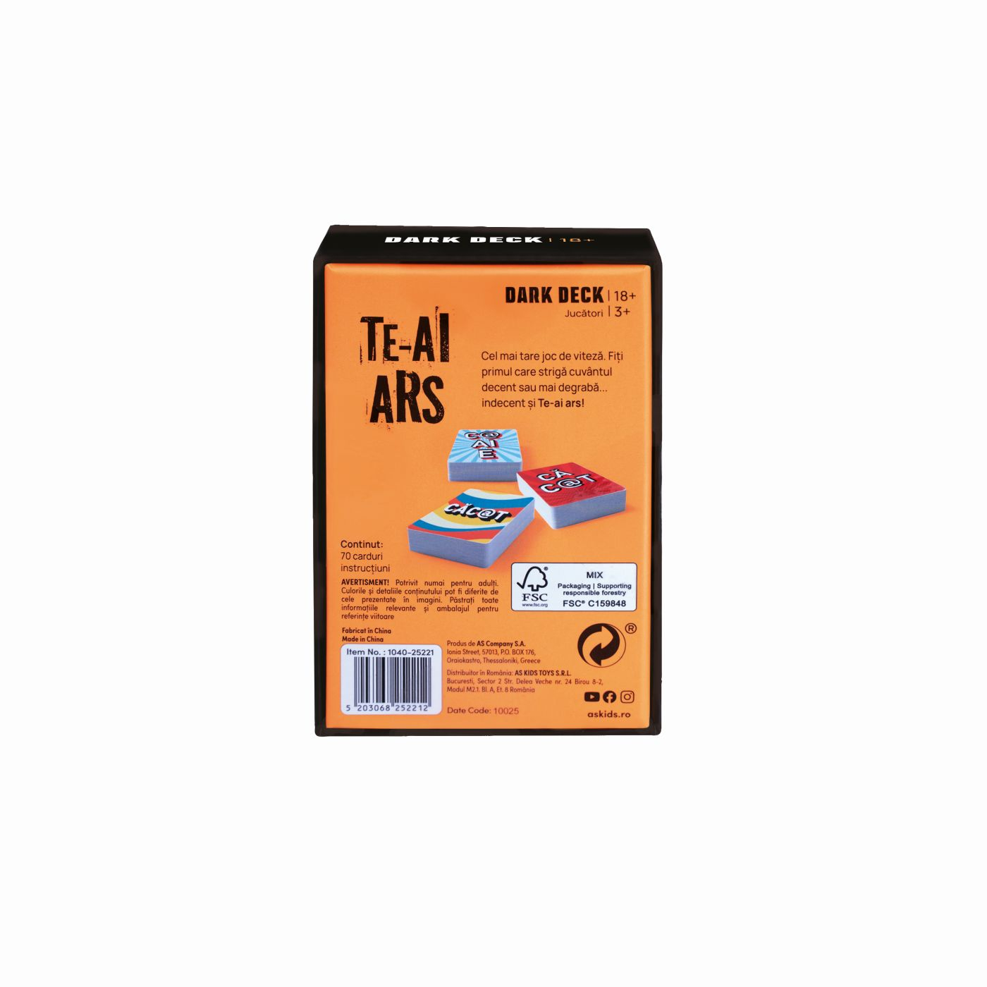 Jocul suprem de viteza! Fii primul care striga cuvantul corect sau mai degraba... cuvantul gresit si Te-ai ars! Numar jucatori: 3+. Varsta recomandata: 18+ ani. Continut: 70 carti, instructiuni. Continutul este destinat strict adultilor de 18 ani si peste.