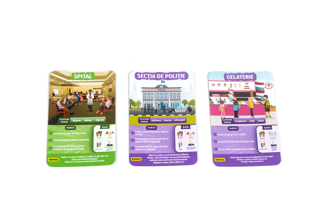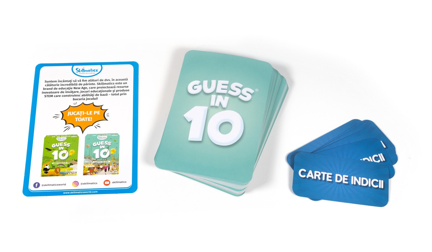 Este „Jocul rapid al intrebarilor inteligente.” Ghiceste in 10 provocari din Lumea Oraselor (pentru copiii de 5 ani si peste) punandu-le intrebari care sa ii ajute sa ghiceasca orasele indicate pe cartea de joc. Fiecare carte contine indicii si aluzii care ar putea sa-i invete pe copii (si pe tine) ceva nou! Copiilor le va placea sa isi adune prietenii si sa ii provoace sa identifice locurile de prin oras pe baza unor indicii din doar doua cuvinte. Pentru a castiga jocul, va fi nevoie sa se puna intrebari inteligente. Contribuie la promovarea abilitatilor sociale si de comunicare, la rezolvarea problemelor, la luarea deciziilor si la gandirea creativa. Recomandat pentru 2-6 jucatori, cu varsta de la 5 ani si peste.