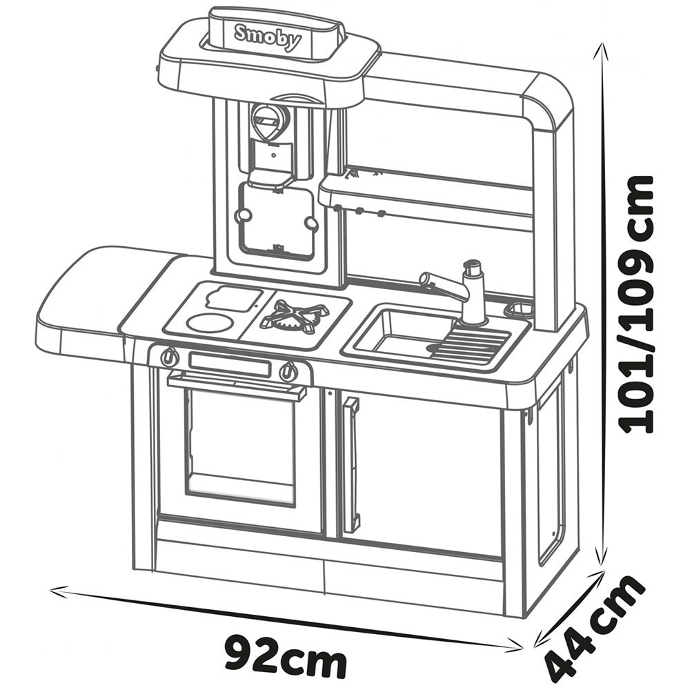 - Bucataria Smoby este dotata cu 31 de accesorii interesante. Printre aceste accesorii, se afla farfurii si tacamuri, electrocasnice de bucatarie, oala cu capac, capsule pentru aparatul de cafea, tigaie, etc.