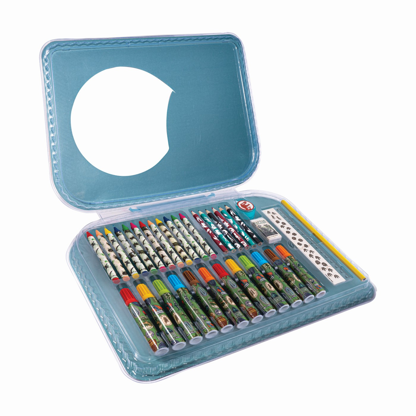 Art Case insoteste copiii pretutindeni, oferindu-le posibilitatea de a desena, picta si crea. Prin acest proces copilul va putea invata culorile si nuantele, formele si notiunea de marimi. Setul este o idee de cadou perfecta pentru fiecare copil care iubeste distractia creativa si care si-ar dori un set mobil de desen, pentru a-si imbunatati abilitatile creative. Valori dezvoltate: creativitate, coordonare mana-ochi, capacitate de concentrare si rabdare. Contine:12 creioane colorate, 12 markere,6 creioane de culoare,1 creion,1 rigla,1 radiera, o ascutitoare. Potrivit pentru copiii de la 3 ani.