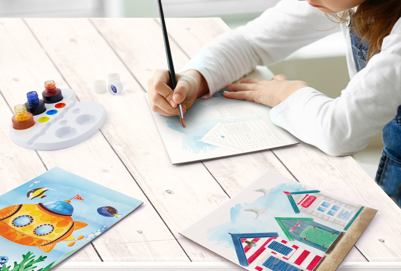 Opere de arta prind viata cu ajutorul culorilor de acuarela pe masura ce colorati sabloanele cu tehnica traditionala si cu tehnica cu ceara. Amestecuri si intensitati diferite ale culorilor va vor introduce in lumea minunata a desenului. Setul contine 4 sabloane pentru a va initia in tehnica desenului cu ceara, 3 acuarele lichide, o paleta, o pensula si un manual cu instructiuni detaliate pentru a va ghida in procesul de colorarea operelor de arta.Potrivit pentru copiii de la 6 ani.