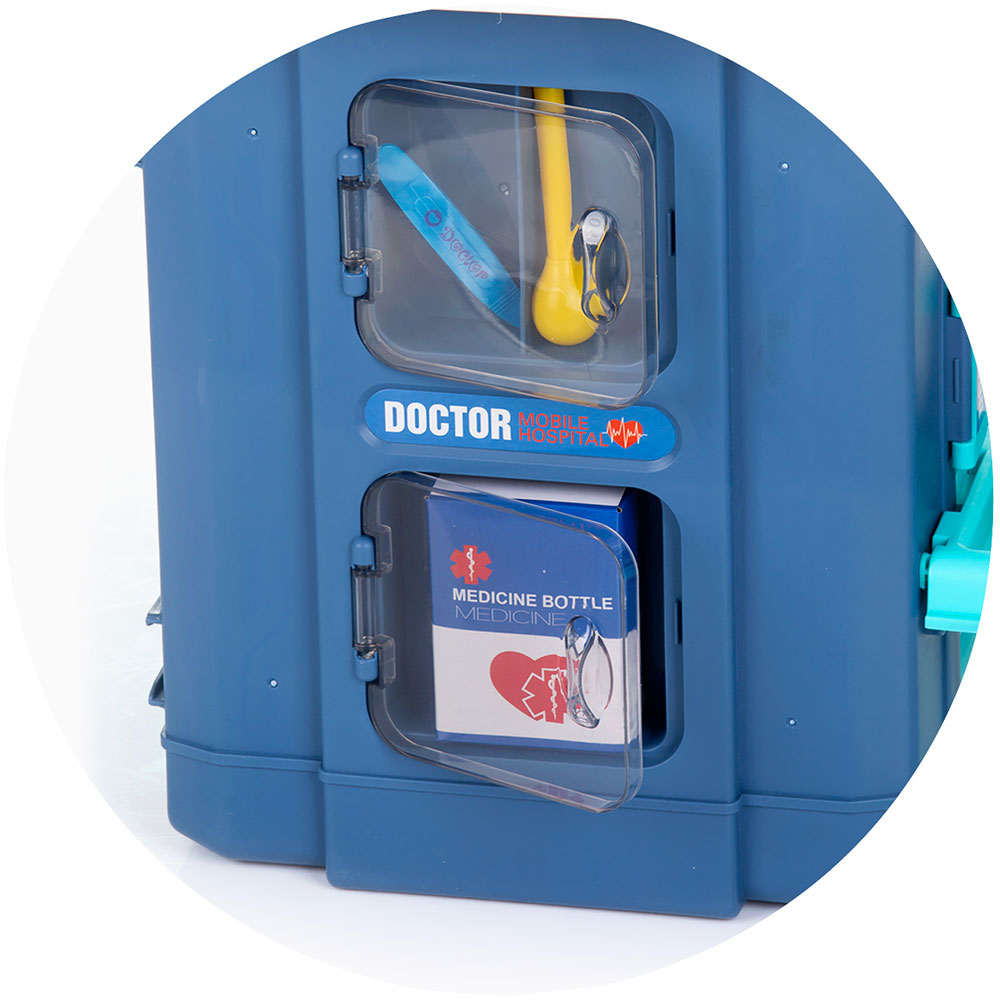 - Set multifunctional cu diferite parti - o valiza, o masa cu instrumente medicale, ochelari, casti, seringi si diverse dispozitive, astfel incat copilul mic sa isi poata "examina" pacientii