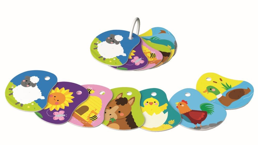 Carti pentru copii - Setul are 7 cartele de imagine fata-verso toate la indemana. Cardurile prezinta animale din mediul rural care atrag ochii copiilor mici. Jucaria poate fi asezata cu usurinta in caruciorul sau masina unui copil si, astfel, poate adauga varietate la plimbari si calatorii.