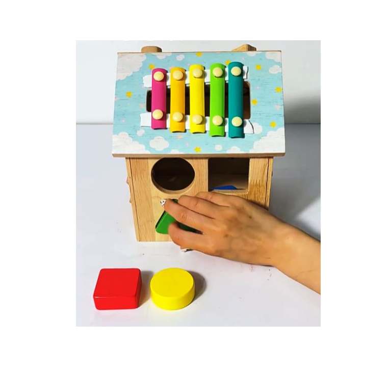 Casuta multifunctionala cu activitati, ceas, roti zimtate, sortator forme diverse
