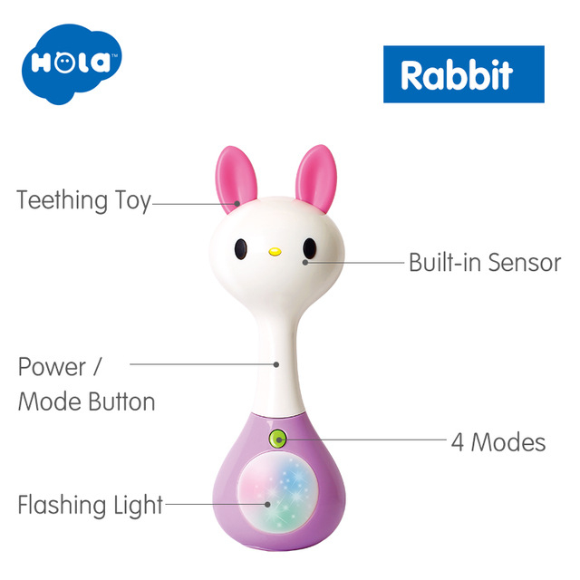 Jucaria Zornaitoare Bebe animalut iepuras cu sunete si lumini antreneaza atingeri, abilitati motorii fine si rezistenta la muscatura. Materialul din care este fabricata este unul usor, moale si sigur. Sunt 3 suprafete diferite in textura si rigiditate dezvolta atingerea si maseaza usor gingiile, Jucaria antreneaza rezistenta muscaturii si are si o forma convenabila pentru strangerea mainii bebelusului. Muzica si sunetele stimuleaza abilitatile auditive ale bebelusului. Ajuta bebelusul sa inceapa sa inteleaga cauza si efectul actiunilor. La apasarea mai lunga a butonului acesta va porni si va incepe sa emita sunete si sa lumineze. Sunt 4 moduri de joaca diferite pentru fiecare apasare de buton.