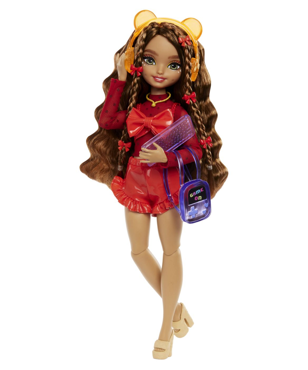 Teresa viseaza sa-si infiinteze propria companie de jocuri video. Ajut- o sa le transforme in realitate cu accesorii tematice pentru jocuri video, cum ar fi castile, tastatura si rucsacul pentru jocuri video. Papusa este pozabila si poarta haine detasabile, cum ar fi bluza ei cu buline stratificata cu o funda rosie lucioasa, pantaloni scurti asortati si tocuri. Papusa Teresa are parul lung saten, cu agrafe de par cu fundita rosie, pentru a-si pune in valoare personalitatea. Acesta este un cadou minunat pentru copii, in special pentru cei care iubesc jocurile video si stilul.