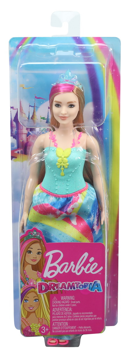Papusile printesa de la Barbie Dreamtopia aduc visuri de basm in aspect fantastic, cu atingeri colorate! Aceasta papusa printesa Barbie este imbracata pentru o ocazie regala, intr-un corset albastru stralucitor si fusta vibranta cu imprimeu curcubeu. O dunga roz in parul ei blond adauga un strop de culoare, iar o tiara stralucitoare isi completeaza aspectul fantastic. Este usor sa joci visuri reale si imaginate cu papusa printesei Barbie, deoarece cand intri in Dreamtopia, te trezesti intr-o lume in care visele devin realitate