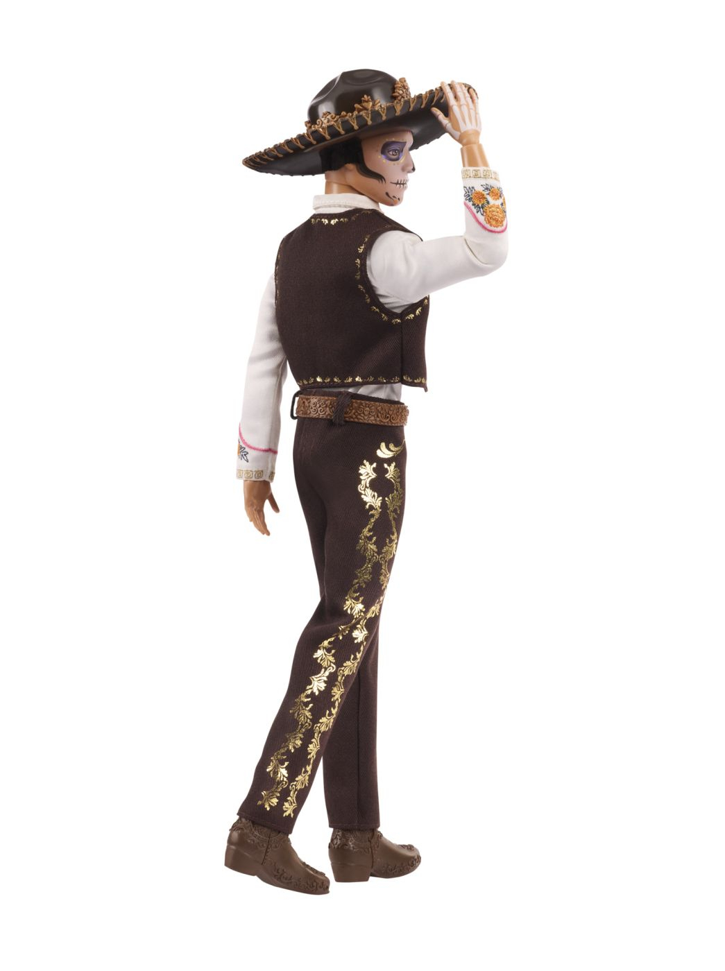 Papusa Ken Dia De Muertos din colectia Barbie Signature celebreaza traditia mexicana printr-un design elaborat si simbolic, inspirat de festivalul dedicat onorarii celor dragi. Ken poarta o tinuta eleganta in stil charro, cu detalii aurii brodate, camasa alba, vesta decorata si pantaloni cu aplicatii traditionale. Accesoriile, precum centura ornamentata si sombreroul detasabil, completeaza perfect aspectul ceremonial. Machiajul de tip calavera, atent realizat, adauga autenticitate si rafinament, transformand papusa intr-o piesa de colectie remarcabila. Prezentata in cutie ilustrata cu motive florale si grafica specifica sarbatorii, papusa este ideala pentru expunere si pentru colectarii pasionati de traditii culturale. Un articol premium, creat pentru admiratori ai colectiilor Barbie Signature si pentru iubitorii festivalului Dia De Muertos, aducand frumusete si semnificatii culturale in orice colectie.