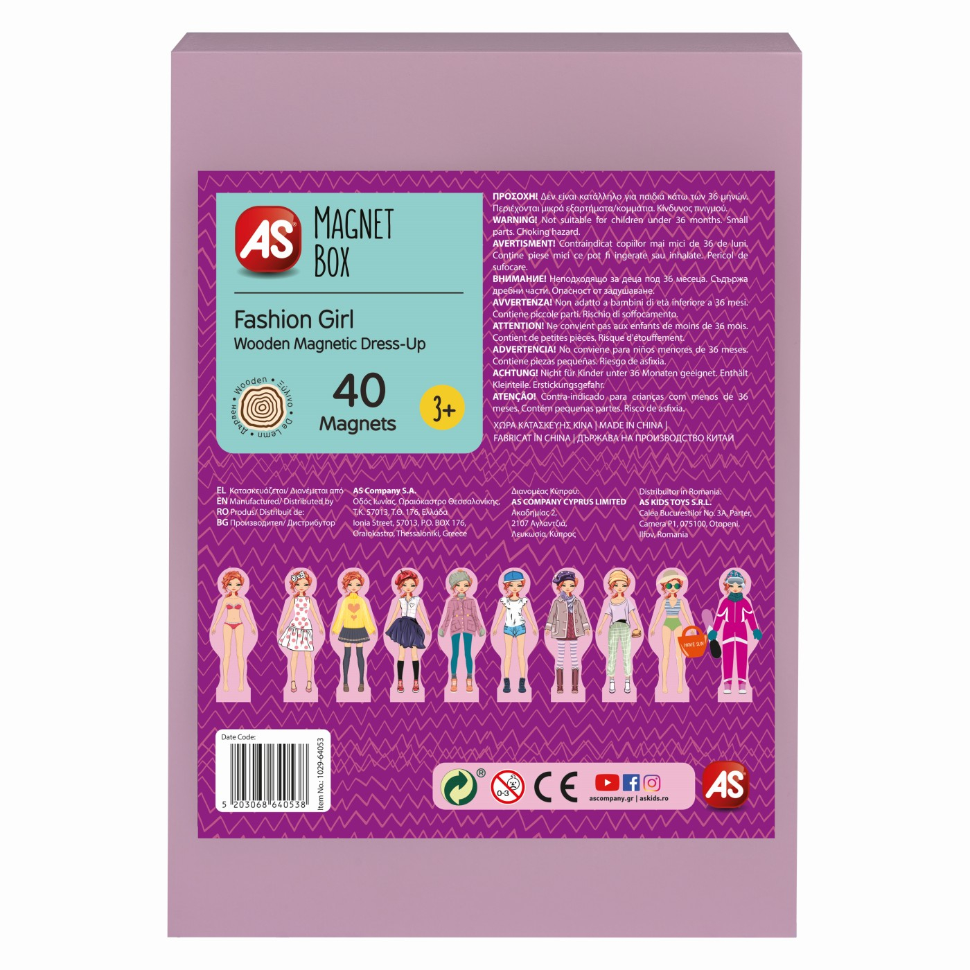 Cea mai la moda fata va asteapta sa deveniti adevarati stilisti cu acest set Magnet Box. Setul include 1 papusa magnetica din lemn fashion girl, o baza magnetica din lemn si 40 de magneti din lemn pentru haine, pantofi si accesorii pentru a o imbraca cu cat mai multe combinatii diferite si a crea stiluri unice. Papusa magnetica din lemn Fashion Girl din lemn se plaseaza rapid si usor in interiorul bazei sale din lemn si te asteapta pentru un joc de imitatie non-stop.