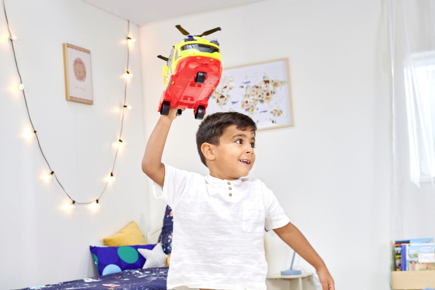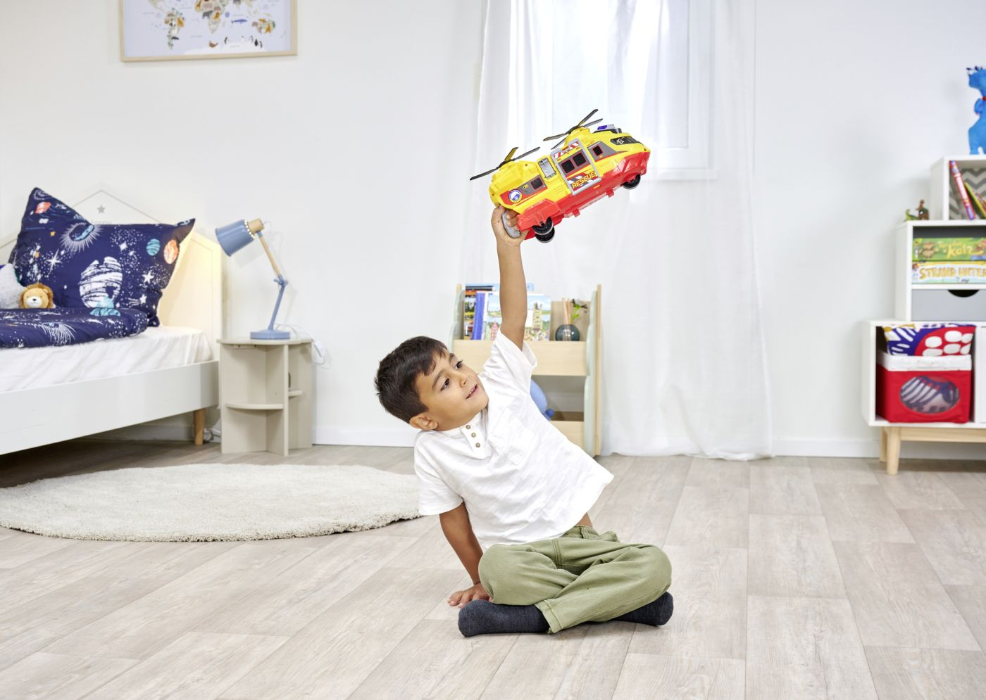 Elicopter (30 cm) de salvare cu brat de macara si accesorii, pentru copii cu varsta peste 3 ani, cu lumina si sunet. Acest elicopter de salvare este intotdeauna gata: fie „zboara”” la locul de utilizare cu elicele sale rotative, fie se rostogoleste pe pamant pe roti folosind roti libere! Va rugam sa retineti: elicopterul nu zboara independent. Cu ajutorul macaralei extensibile, targa inchisa pentru salvarea pacientilor poate fi pozitionata optim si incarcata si descarcata cu pricepere folosind rampele usii cu balamale.
