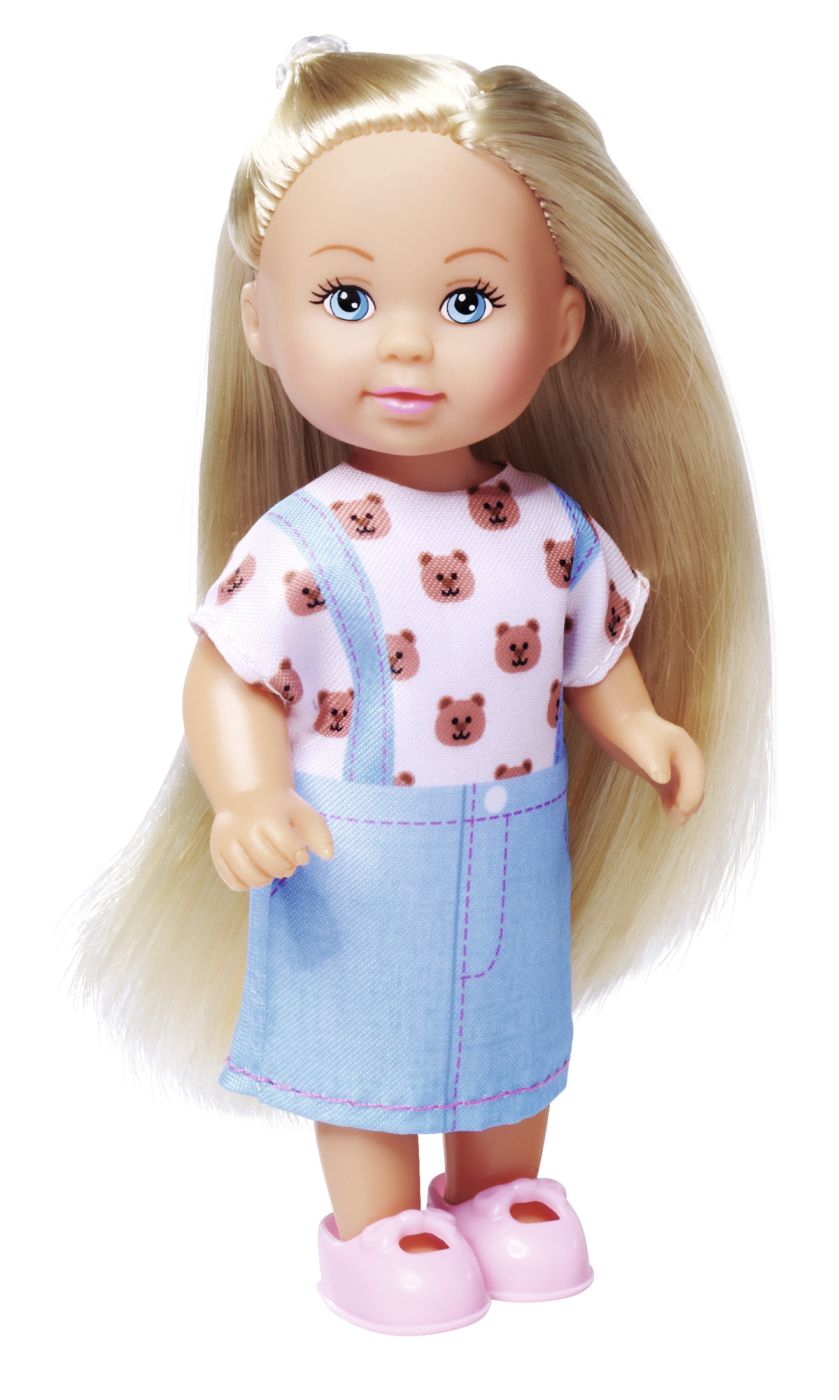 Set Fashion papusa Evi cu accesorii. Trei tinute dragute - Evi poarta o rochie din denim si vine cu alte doua tinute la moda cu imprimeuri adorabile pentru distractie creativa la imbracat. Include adidasi - Incaltamintea perfecta pentru fiecare look: adidasii inclusi completeaza fiecare tinuta. Papusa la moda de 12 cm se potriveste perfect in mainile copiilor mici si este usor de luat oriunde. Perfecta pentru povesti imaginative despre imbracat, re-aranjare si joaca cu papusi. Potrivita pentru copii cu varsta de 3 ani si peste.