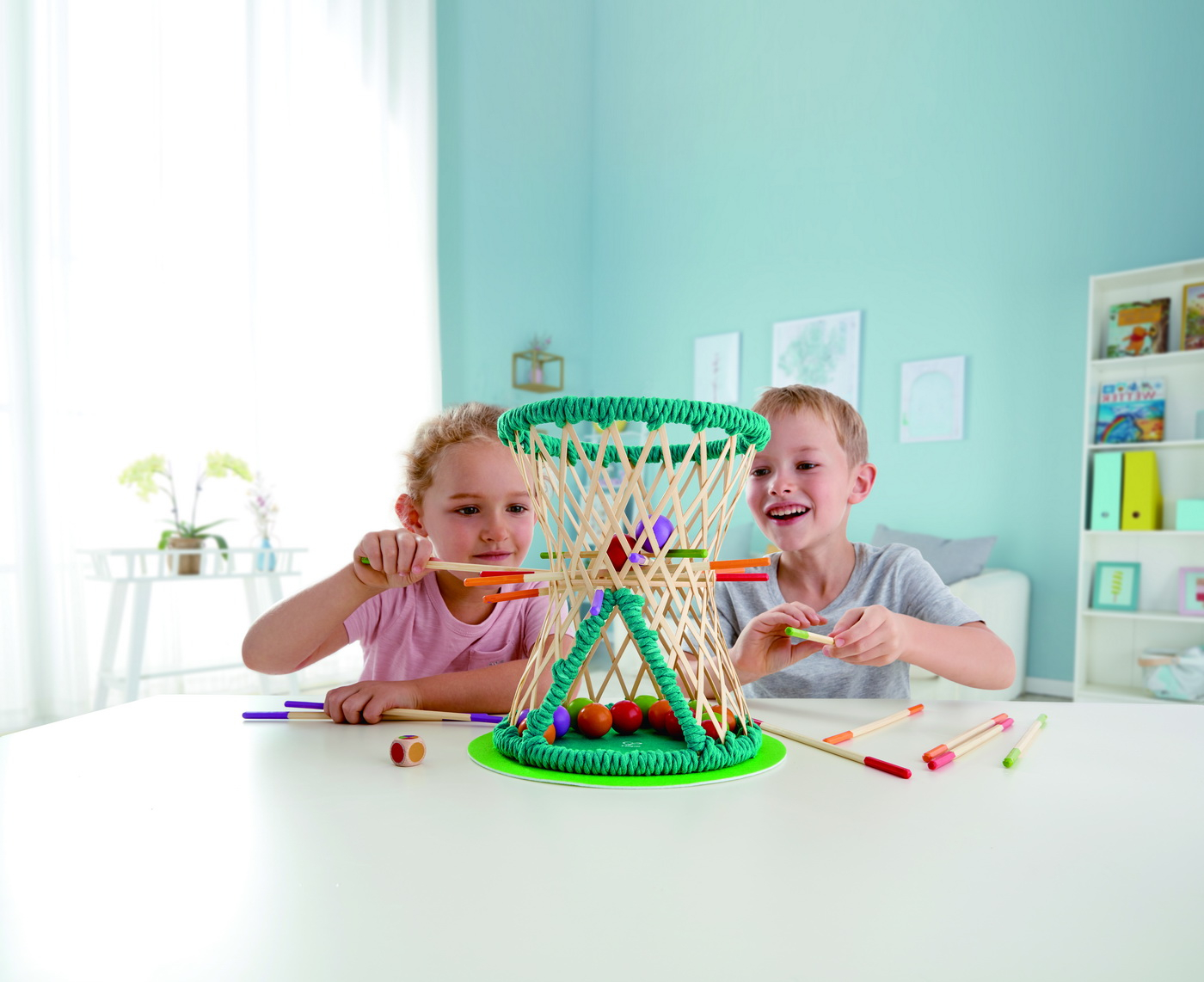 Poti scoate un bat fara sa dai jos o singura bila de lemn? Acest joc distractiv poate fi jucat in trei moduri diferite pentru a completa toate nivelurile. Fabricat din bambus. Acest joc stimuleaza dexteritatea si abilitatile de rezolvare a problemelor. Jucatorii pot sorta si numara betele si mingile. Jucariile sunt realizate din lemn, folosind materiale ecologice, vopsite in culori atragatoare cu vopsele nontoxice, care depasesc cele mai inalte si stricte standarde internationale de siguranta si calitate, precum EN71, ISO9001, ASTM F963 si altele. De multi ani, Hape a creat jucarii fantastice, de inalta calitate, folosind materiale ecologice si durabile, fiecare produs fiind atent proiectat pentru a stimula abilitatile senzoriale, fizice si emotionale.