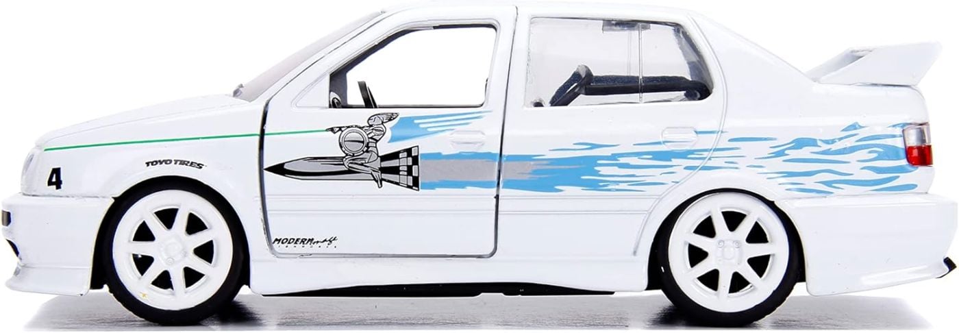 Ajutati-l pe Dom si echipajul sau in timp ce isi continua exploatarile globale in franciza de neoprit, construita pe viteza! Prezinta indicii de stil direct din filme, aceste vehicule se vor ridica cu siguranta la standardele fanilor si colectionarilor deopotriva. Aduna-le pe toate formeaza-ti propria echipa rapida si salveaza ziua! Usile, capota si portbagajul se pot deschide. Scara 1:24. Lungime masinuta 22 cm. Acest pachet contine masinuta Volkswagen Jetta.