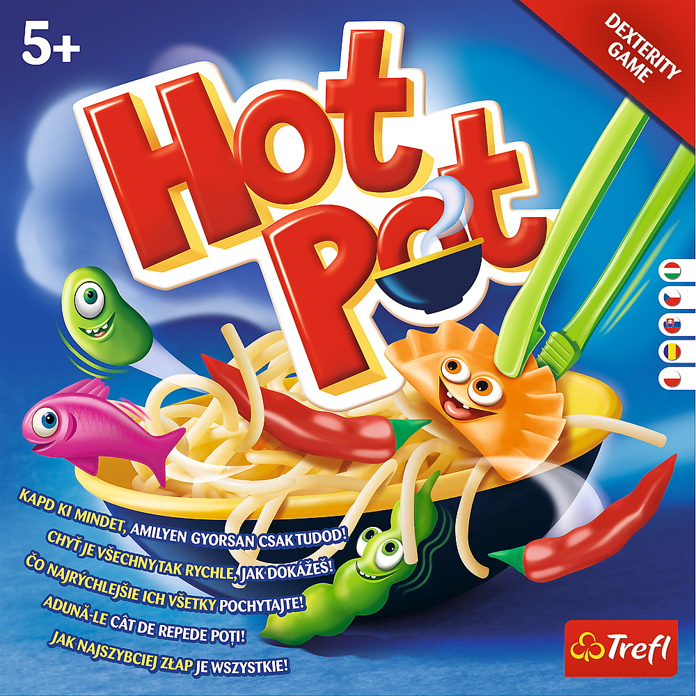 Încercati sa scoateti mancarea potrivita din oala! Dezvaluiti o carte si uitati-va ce ingredient trebuie sa cautati. Puteti folosi carligele sau betisoarele, precum si propriile maini agile! Sa luam ceva de mancare cu un joc uimitor de dexteritate. Pare simplu ? Mai gandeste-te. Cutia contine : 4 pensete, betisoare de bambus, paste, 1 castron, 56 de sarcini pe 28 de carti si 40 de alimente. Numarul de minim de jucatori este 2 si maxim 4.