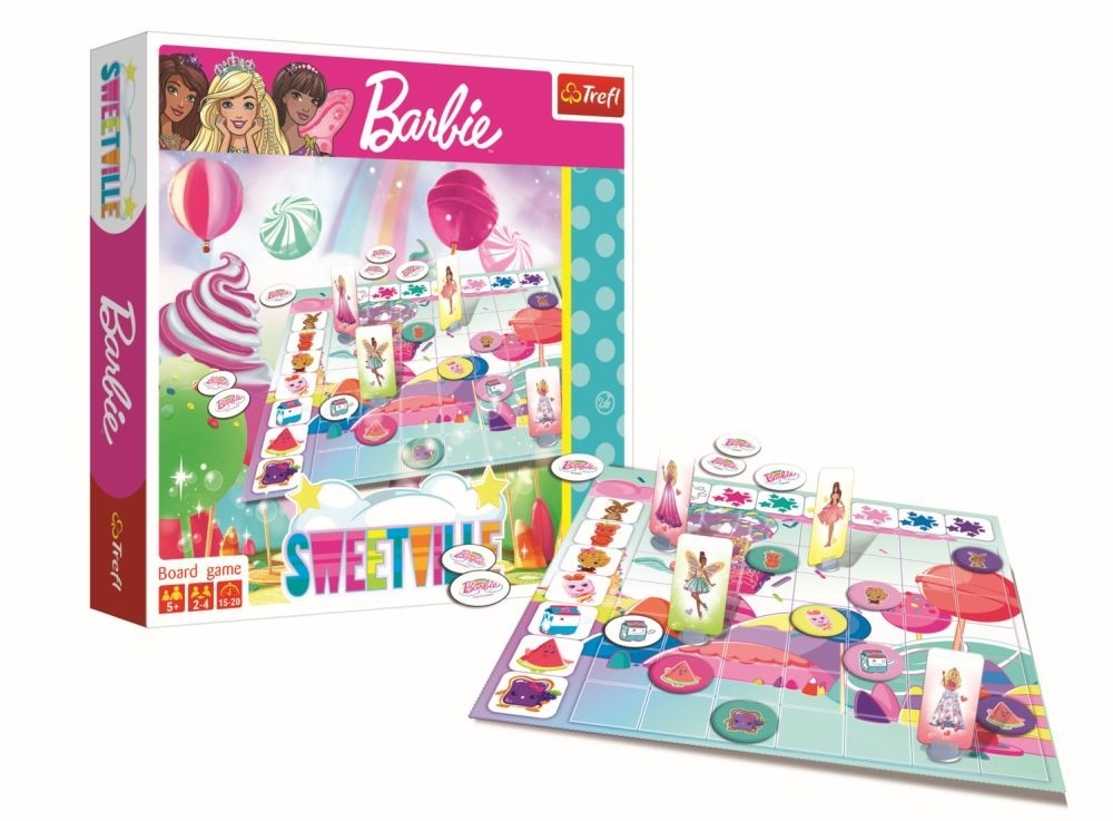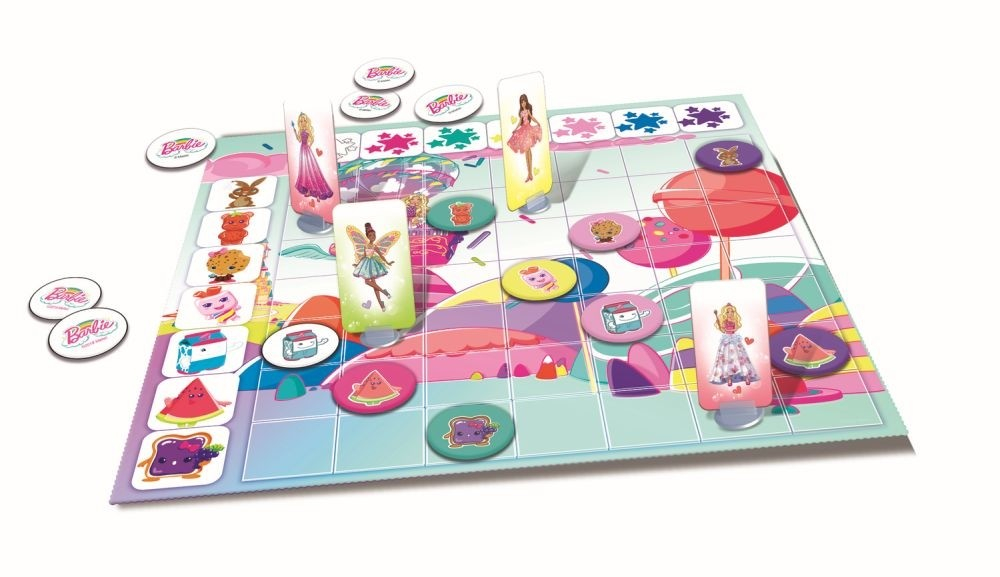 Împreuna cu prietenii ei, Barbie a vizitat Orasul Dulciurilor – o gradina de acadele, trambuline din biscuiti si nori din vata de zahar, distractie garantata! Locuitorii din Orasul Dulciurilor le-au propus sa joace leapsa, ca acea frumoasa zi sa decurga si mai bine. Mutati miniaturile din hartie pe tabla de joc, evitand intalnirea cu ceilalti. Care dintre personaje va castiga? Continut: · tabla de joc · 13 miniaturi din hartie · 13 suporturi de plastic pentru miniaturile din hartie · 49 de jetoane cu locuitorii din Orasul Dulciurilor · instructiuni