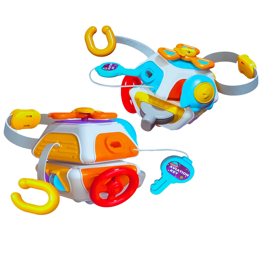 - Jucaria interactiva este sub forma de doua trunchiuri de piramida imbinate la baza, care la rasucire produc pocnete. Fiecare latura are elemente interactive ce ofera 10 activitati diferite: elice rotativa, mufa multifunctionala, cheie, catarama atasata unei curele, carlig, butoane tip intrerupator, roti mobile, maneta glisanta, volan rotativ si butoane push pop it.