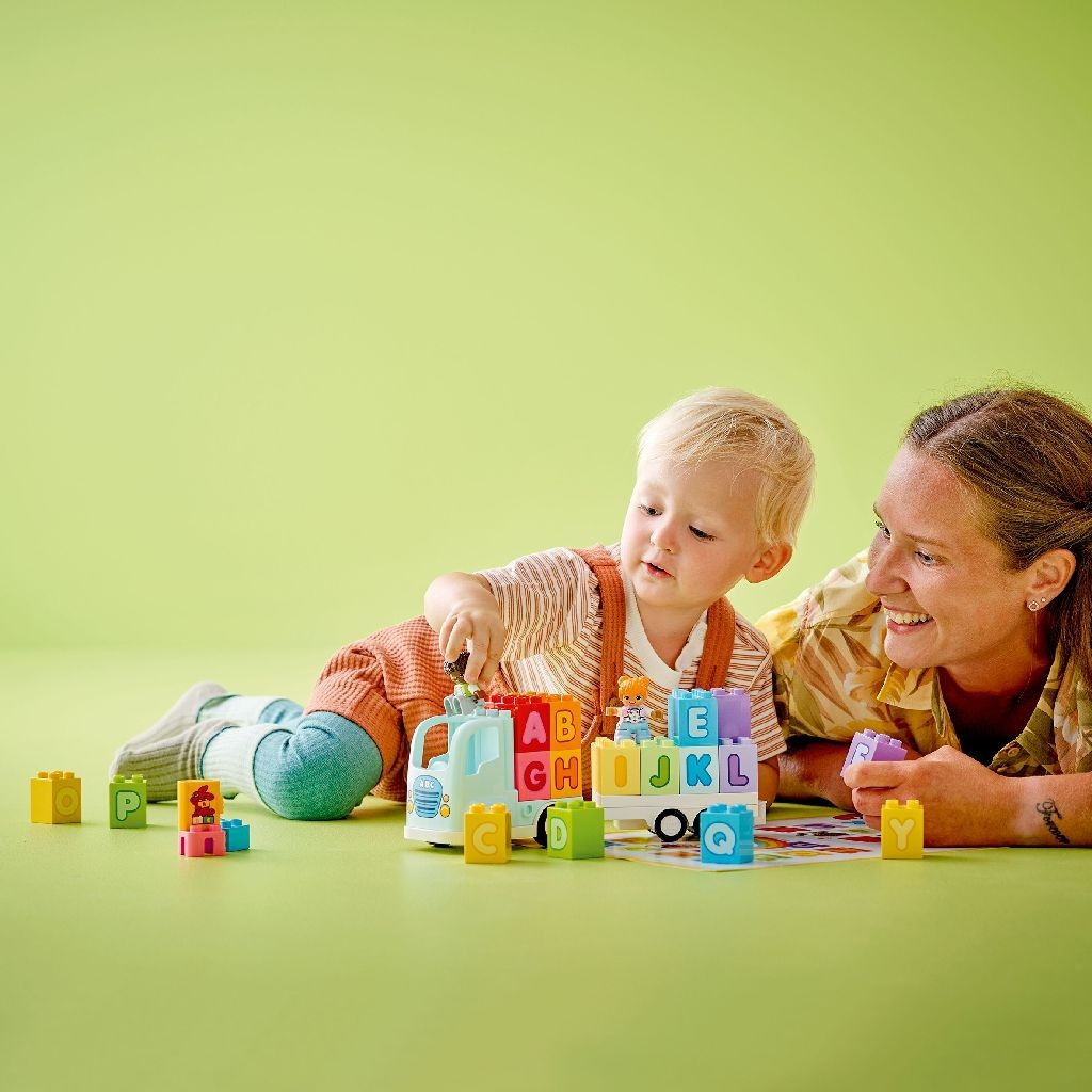 Directioneaza copiii mici in procesul de invatare a literelor cu jucaria construibila LEGO DUPLO Camion cu alfabet (10421) pentru prescolari. Aceasta jucarie ABC creativa ofera o multitudine de posibilitati de invatare prin joaca. in timp ce micutii conecteaza remorca la camionul de jucarie si le ajuta pe cele 2 figurine LEGO DUPLO sa incarce si descarce caramizile, acestia incep sa recunoasca literele, sa invete culorile si sa-si imbunatateasca limbajul si abilitatile motorii fine. Accesoriile creative includ si un abecedar LEGO DUPLO de jucarie si un element difuzor pentru a-i incuraja pe parinti si pe copii sa interpreteze cantece distractive despre litere. Aceasta jucarie educationala ii incurajeaza pe micuti sa inventeze povesti creative in timp ce urca in cabina camionului lor de jucarie si pornesc intr-o noua aventura! Ofera-le copiilor ocazii de dezvoltare cu jucariile de construit LEGO DUPLO care pun joaca nelimitata, exprimarea si educatia in mainile prescolarilor.