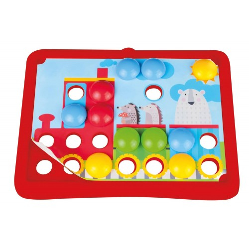 Primul meu Mozaic cu trafic (masini,avion,barca,tren,etc.) este un joc ce dezvolta creativitatea,imaginatia si indemanarea copilului, fiind special conceput pentru copii de la 2 ani.Este realizat dintr-un plastic placut la atingere,cutia continand 36 piese de diverse culori (diametru piesa 3,2 cm),1 tabla suport (28x21 cm) si 7 sabloane cu diverse imagini. Dimensiune cutie: 32.5x24x4.5 cm