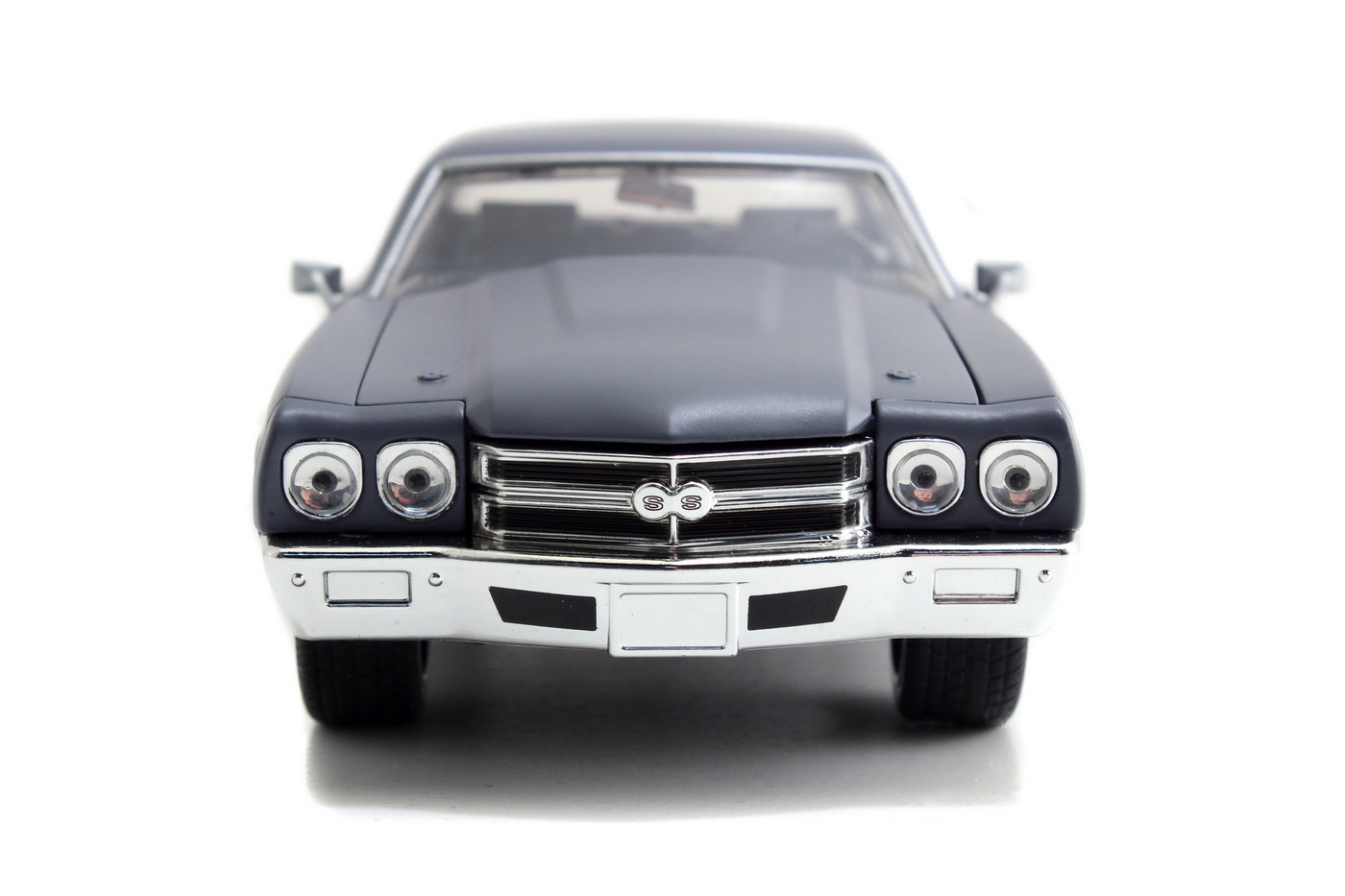 Masinuta din metal Chevy Chevelle SS 1970, cu usi, capota si portbagaj ce se pot deschide, scara 1:24. Ajutati-l pe Dom si echipajul sau sa-si continue succesele globale in franciza de neoprit construita pentru viteza! Vehiculele sunt echipate cu dispozitive stilistice direct din filme si raspund exigentelor fanilor si colectionarilor. Adunati-i pe toti pentru a va aduna propria echipa rapida si pentru a salva ziua!