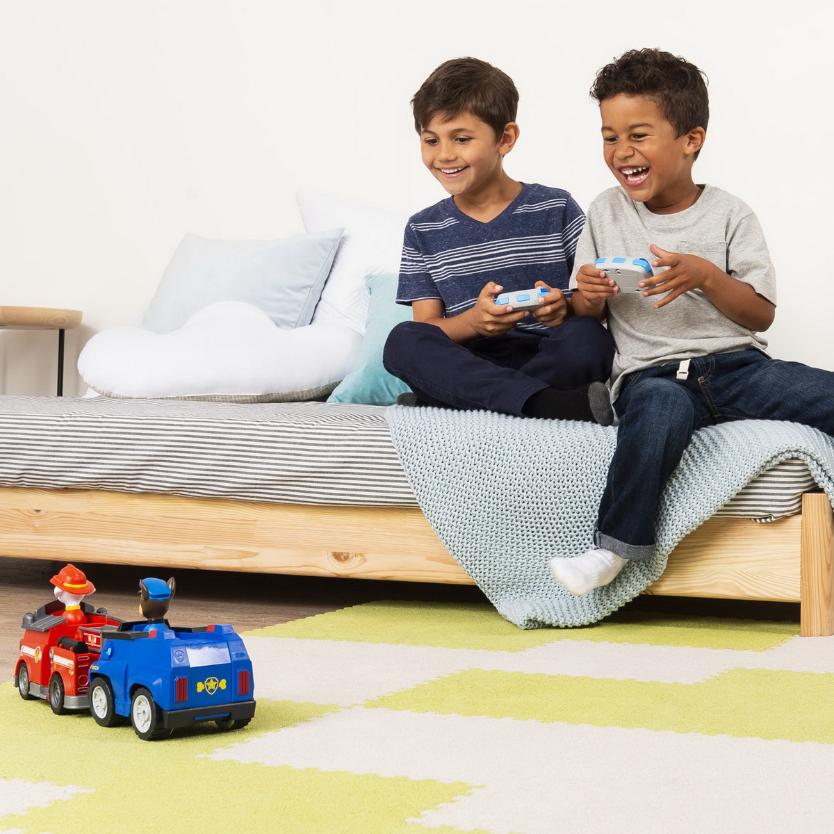 Pregateste-te pentru a intra in actiune cu un nou vehicul controlat Chase! Cu acesta, fiecare copil se poate simti ca si cum ar participa la o goana nebuna cunoscuta din serialul TV preferat! O multime de detalii si o figurina Chase frumoasa la volan vor face aceasta masina de politie controlata cu telecomanda sa va ofere o multime de impresii de neuitat. Vehiculul este controlat de un pad foarte usor de manipulat, care permite vehiculului sa se intoarca, sa mearga inainte si inapoi. Este sistemul perfect pentru toti soferii debutanti! Raza sa de actiune de pana la 76 de metri va garanta o distractie deosebita si scenarii de salvare mai ample. Chase se uita deja dupa intariri! Faceti ca toti cei din Golful Aventurilor sa se simta in siguranta! Vehiculele controlate ale Patrulei Catelusilor sunt jucarii perfecte pentru toti copiii de varsta de peste 3 ani. Setul necesita 3 baterii AAA pentru controlul padului de control (setul nu le include). Setul include: 1 vehicul controlat de la distanta -masina de politie a lui Chase, Comanda pentru control, manual de instructiuni.