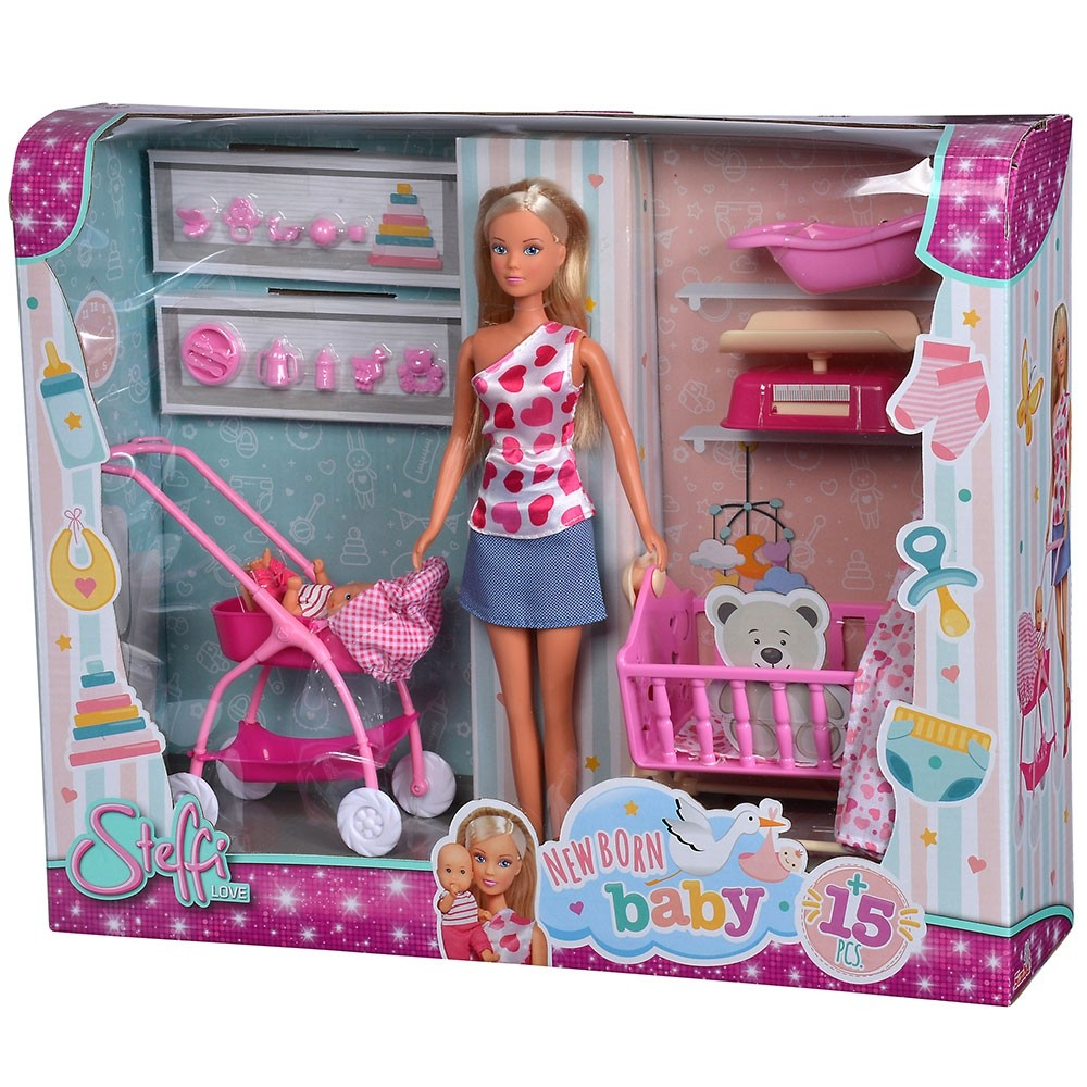 Set Simba Steffi Love New Born Baby Set papusa 29 cm, 1 bebelus si accesorii