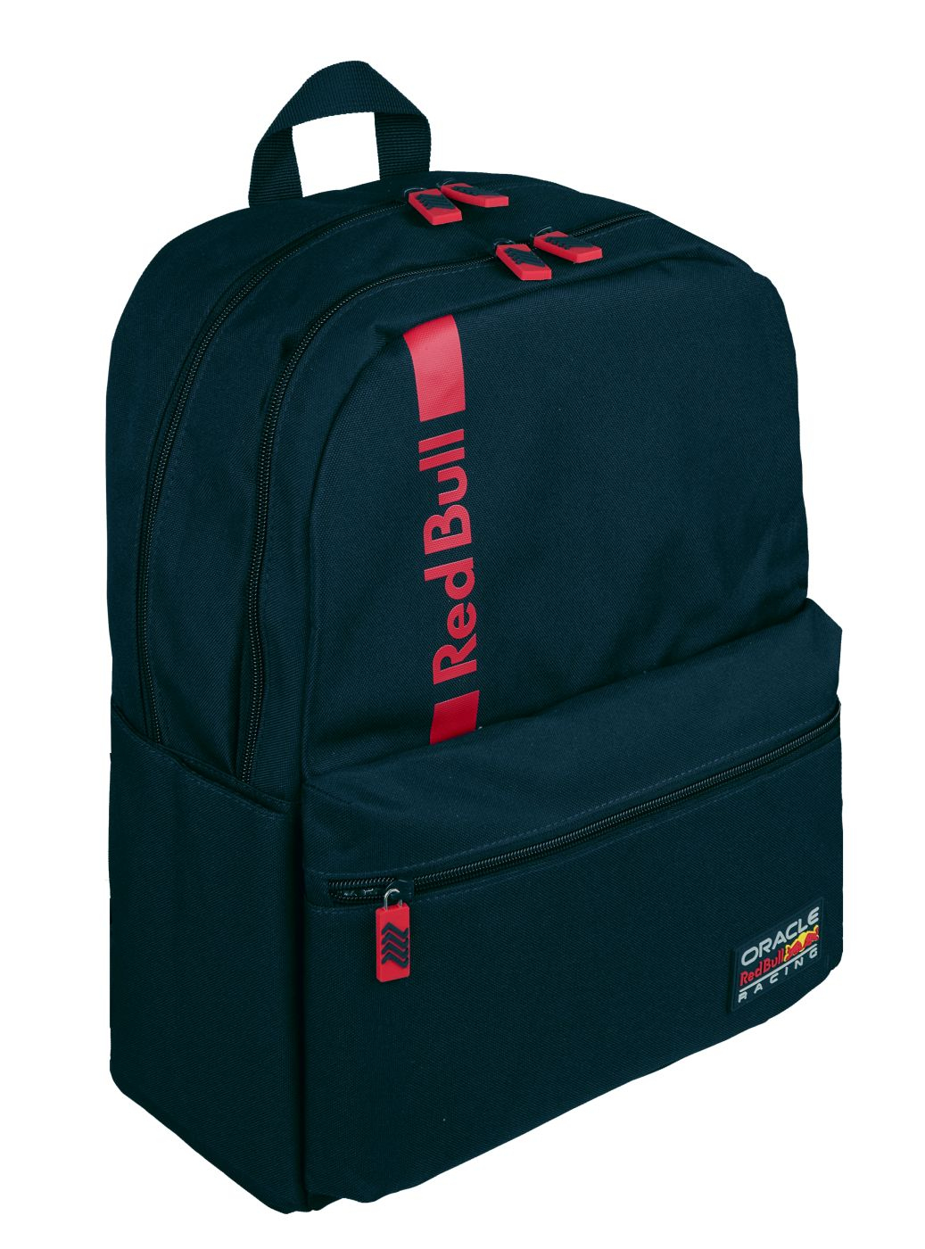 Ghiozdan Oracel Red Bull Racing cu compartiment principal mare si compartiment integrat pentru laptop, precum si fermoar cu doua cai, compartiment suplimentar, de asemenea, cu fermoar cu doua cai, buzunar frontal cu fermoar, bretele captusite + reglabile, spate captusit, curea integrata pentru troler, cu fermoar (compartiment secret) pe spate, doua buzunare laterale cu care se cauta logo fata, poliester.