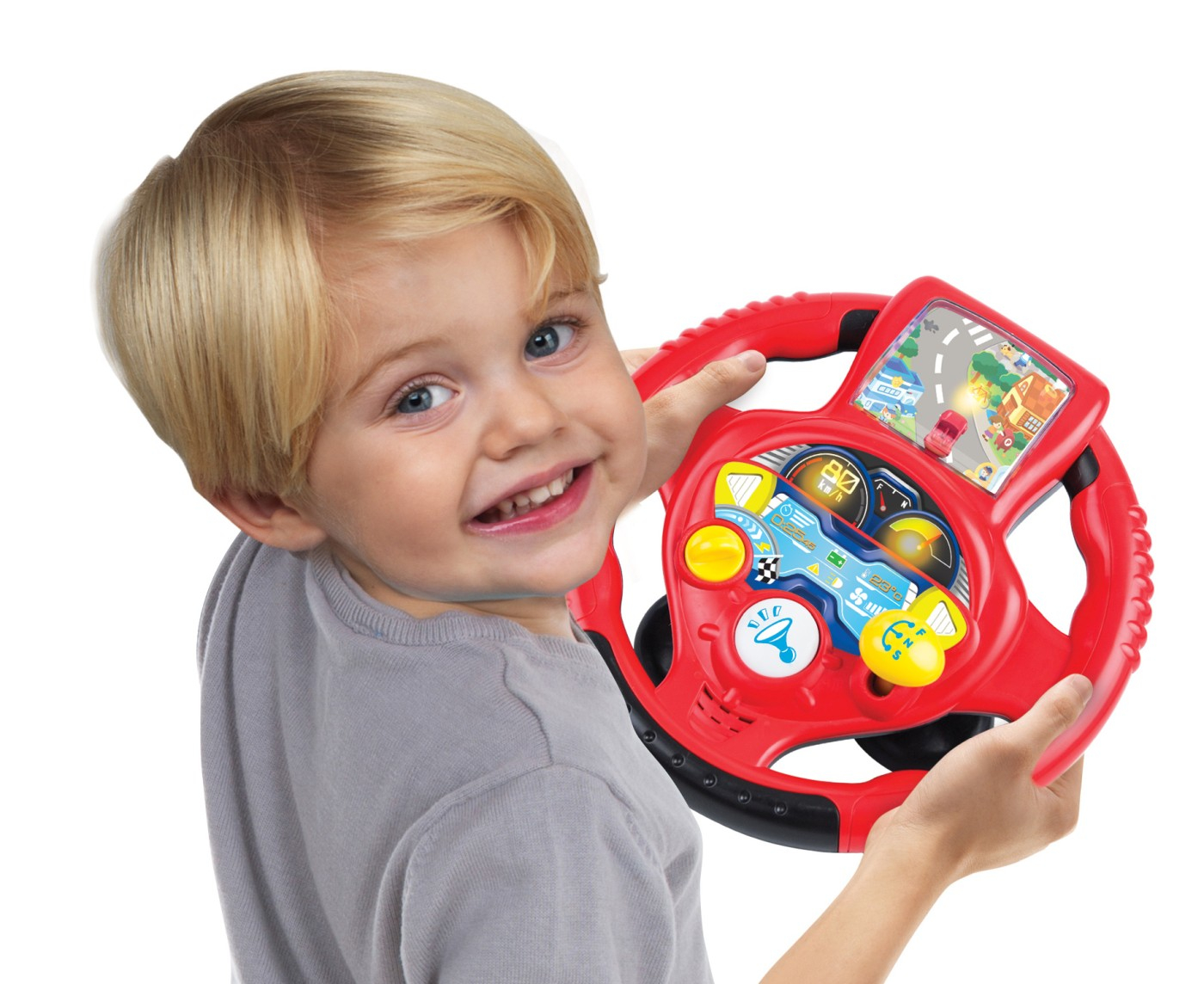 Volanul cu sunete, lumini si cu schimbator de viteze in 2 trepte este o jucarie captivanta si educativa, ideala pentru copiii cu varsta incepand de la 24 de luni. Ecranul volanului prezinta o imagine detaliata a unei masini in miscare, cu faruri luminoase, creand o experienta realista si captivanta pentru copii. Prin simpla rotire a volanului, cei mici isi vor dezvolta imaginatia si coordonarea mana-ochi. Luminitele de pe bord adauga o nota de autenticitate si fascineaza copiii, oferindu-le o experienta de condus realista si plina de entuziasm. Sunetele realiste ale masinii includ cheia de contact, claxonul si schimbarea treptelor de viteza, recreand fiecare detaliu al experientei de condus. Aceste sunete contribuie la stimularea auzului si la imbogatirea experientei de joc, oferind copiilor o senzatie autentica si interactiva. Volanul cu schimbator de viteze si bord luminos este nu doar o jucarie de divertisment, ci si o unealta educativa valoroasa. Prin explorarea functiilor sale variate si prin implicarea in diverse scenarii de joc, copiii vor dezvolta abilitati esentiale precum imaginatia, abilitatile sociale si capacitatea de a rezolva probleme. De asemenea, acest tip de jucarie ii ajuta pe cei mici sa inteleaga mai bine lumea din jurul lor si sa exerseze diferite roluri si responsabilitati.