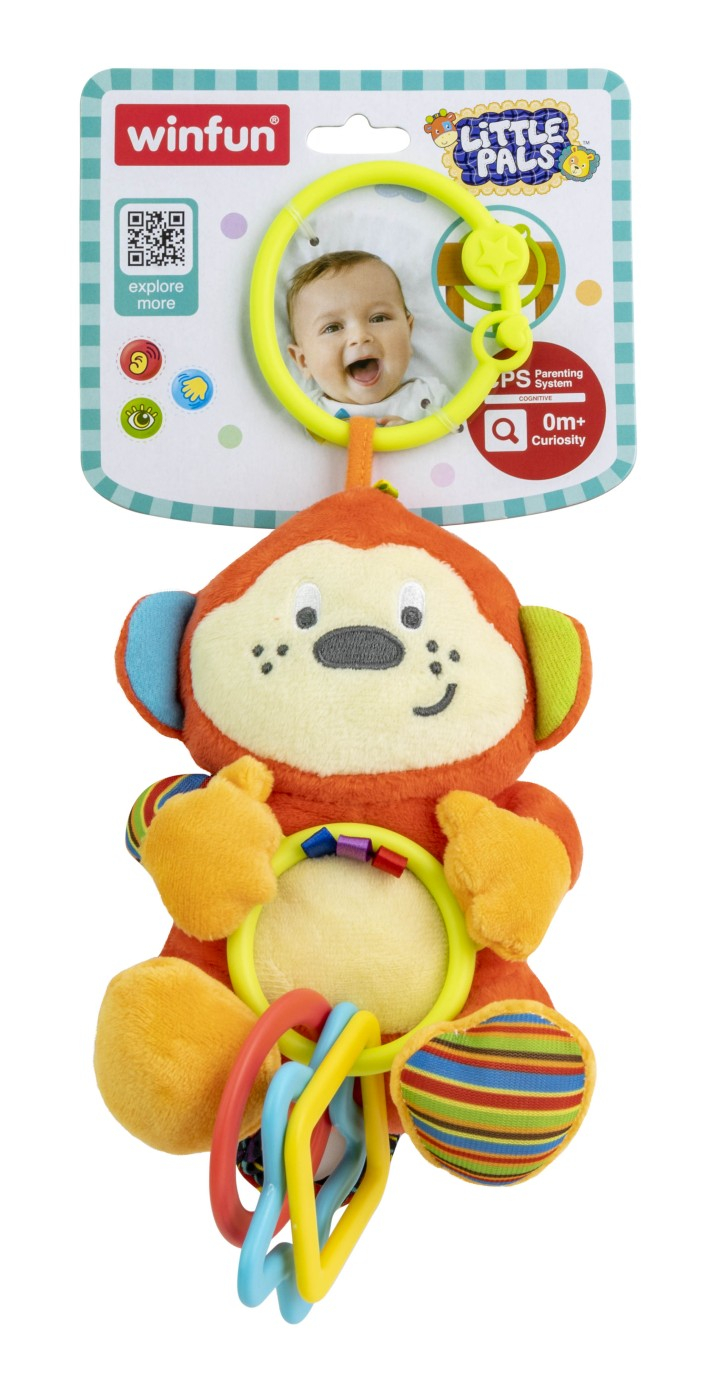 Zornaitoarea Maimuta este un companion vesel si interactiv pentru micutul tau. Cu panglici de satin si urechi incretite, aceasta stimuleaza simturile tactile ale copilului, incurajandu-l sa exploreze si sa descopere lumea din jur. Inelele colorate si inelul transparent cu margele adauga o dimensiune captivanta la experienta de joaca, oferind posibilitati nelimitate de explorare si divertisment. Usor de apucat si de agitat: zornaitoarea emite sunete distractive, captivand atentia copilului si stimulandu-i creativitatea si imaginatia. Inelul pentru transport facil permite jucariei sa fie luata cu usurinta in calatorii sau in plimbari in aer liber, oferindu-le copiilor distractie si confort oriunde s-ar afla. Cu dimensiunile sale perfecte pentru manutele mici ale copilului, aceasta jucarie devine rapid un companion de incredere si plin de distractie pentru cei mici. Moale, pufoasa si colorata, maimutica este nu doar o jucarie, ci si un prieten vesel si reconfortant pentru bebelusi incepand chiar de la nastere. Aceasta zornaitoare maimuta aduce bucurie si stimulare in viata micutilor, contribuind la dezvoltarea lor armonioasa si oferindu-le momente de joaca distractive si educative. O alegere perfecta pentru parintii care cauta o jucarie versatila si captivanta pentru copiii lor in crestere. Este jucaria perfecta pentru bebelusi incepand de la nastere. Varsta recomandata: 0 luni +